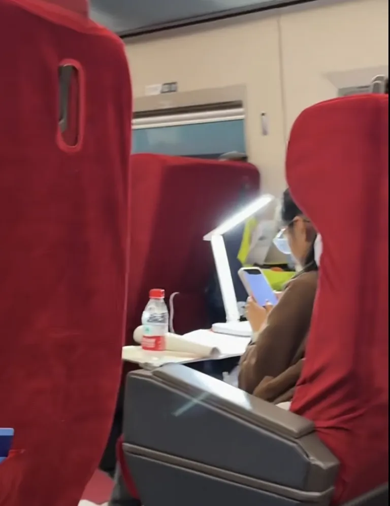 此外,还有一组高铁秒变“移动教室”的小视频走红,画面中成群结队出游的中小学生并未卸下书包,反而伏在狭小的桌板上奋笔疾书,有家长为了做作业方便,还给孩子带了移动的台灯。
