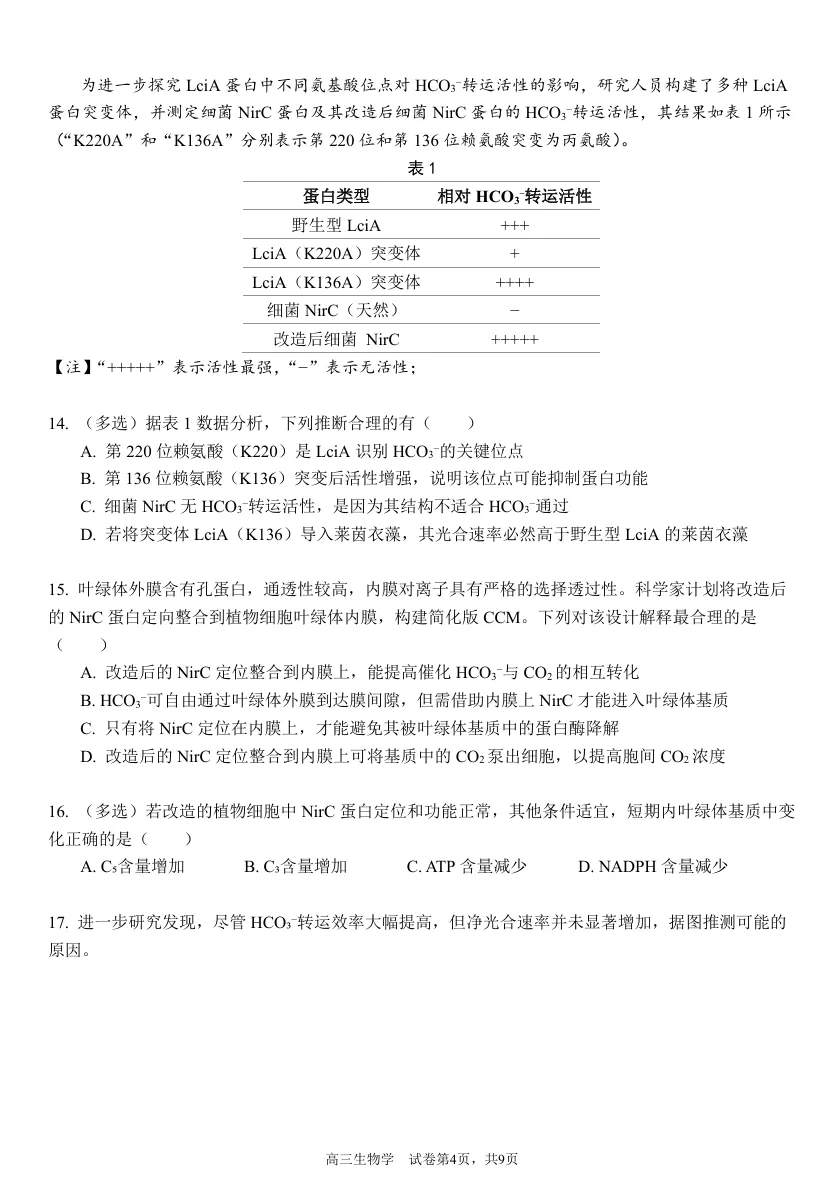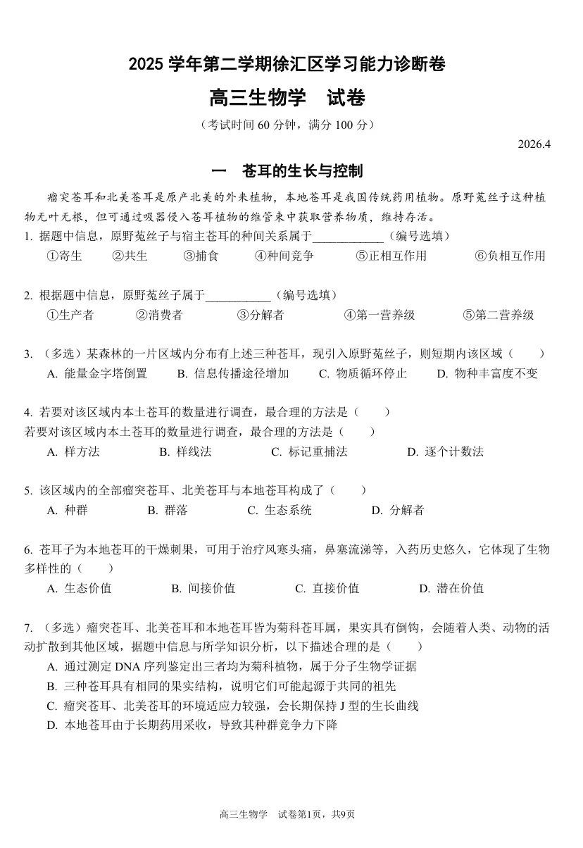 2026年内蒙古包头市高三二模试卷及答案【全套高清版】