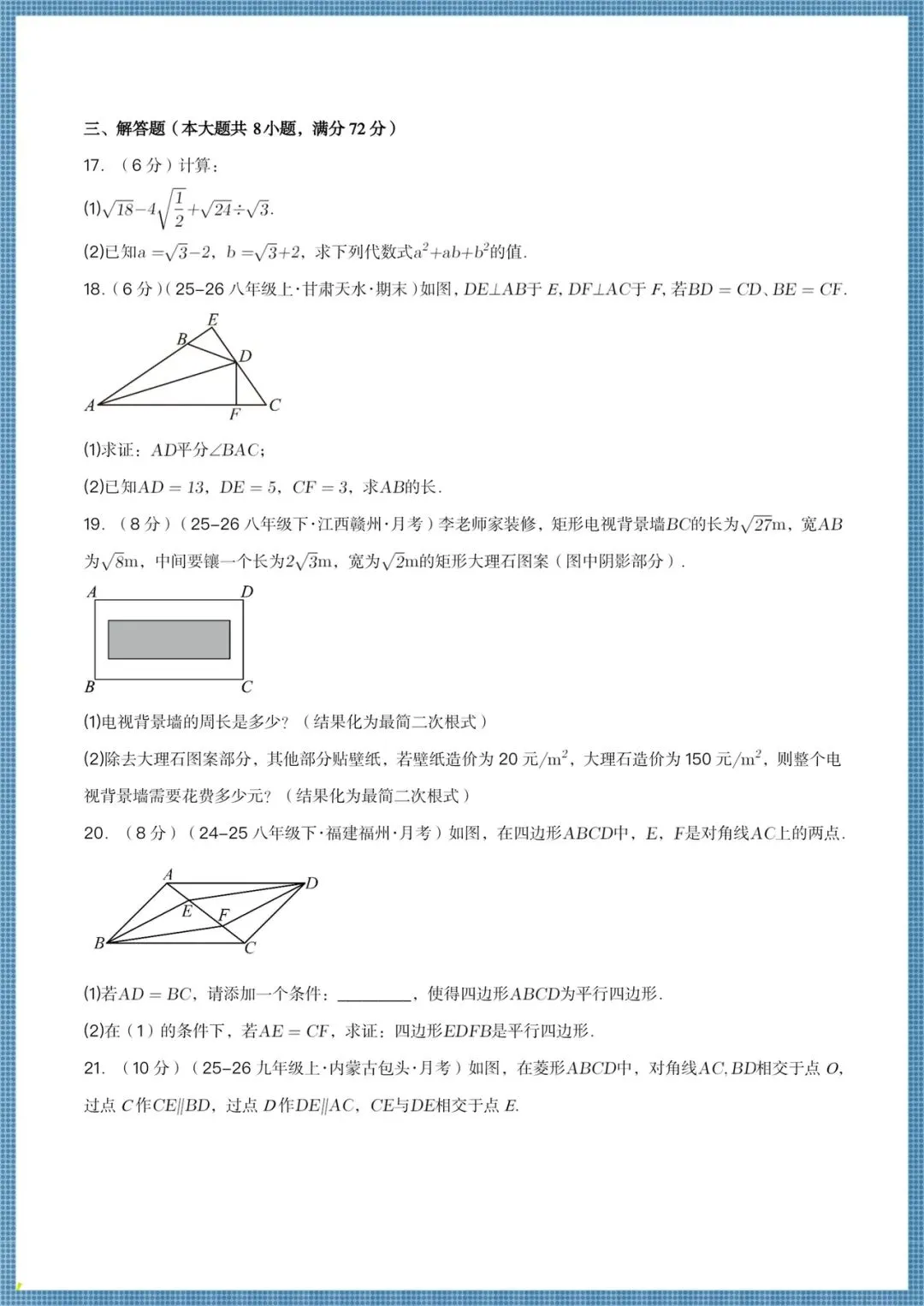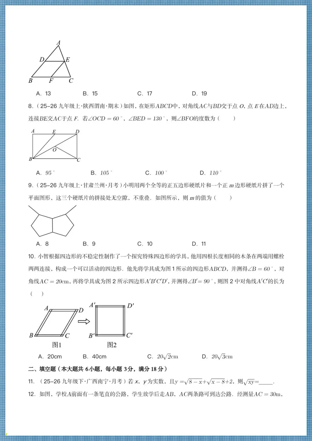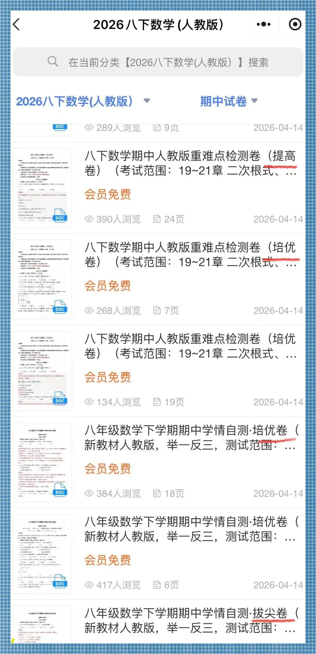 2026初二八下数学期中试卷+解析(共5套),电子版可下载打印!