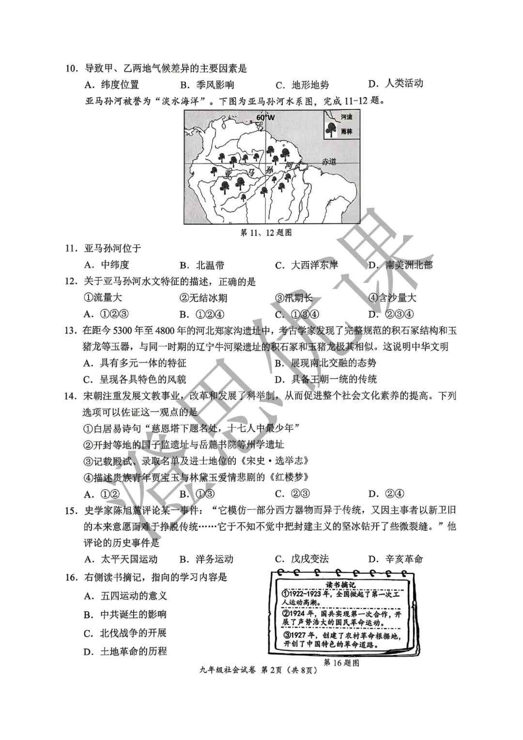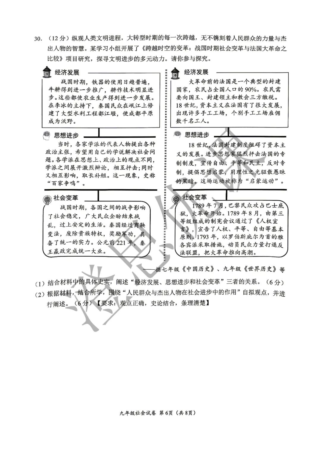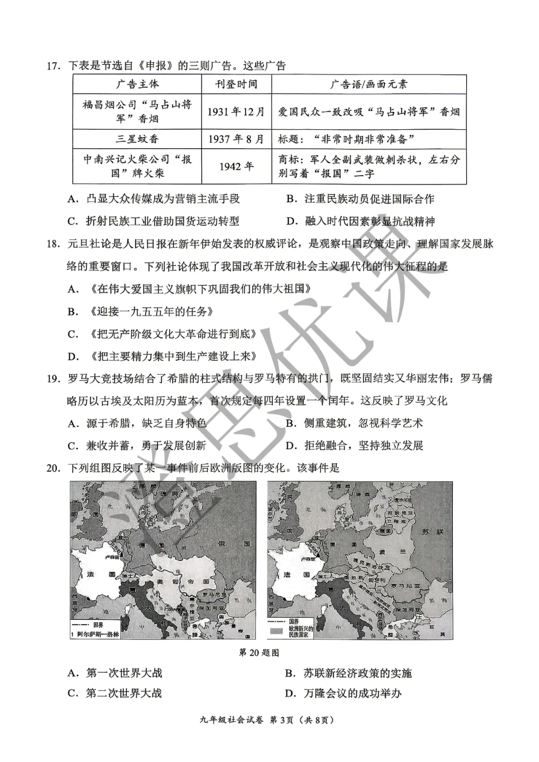 2026年太原市一模历史试卷