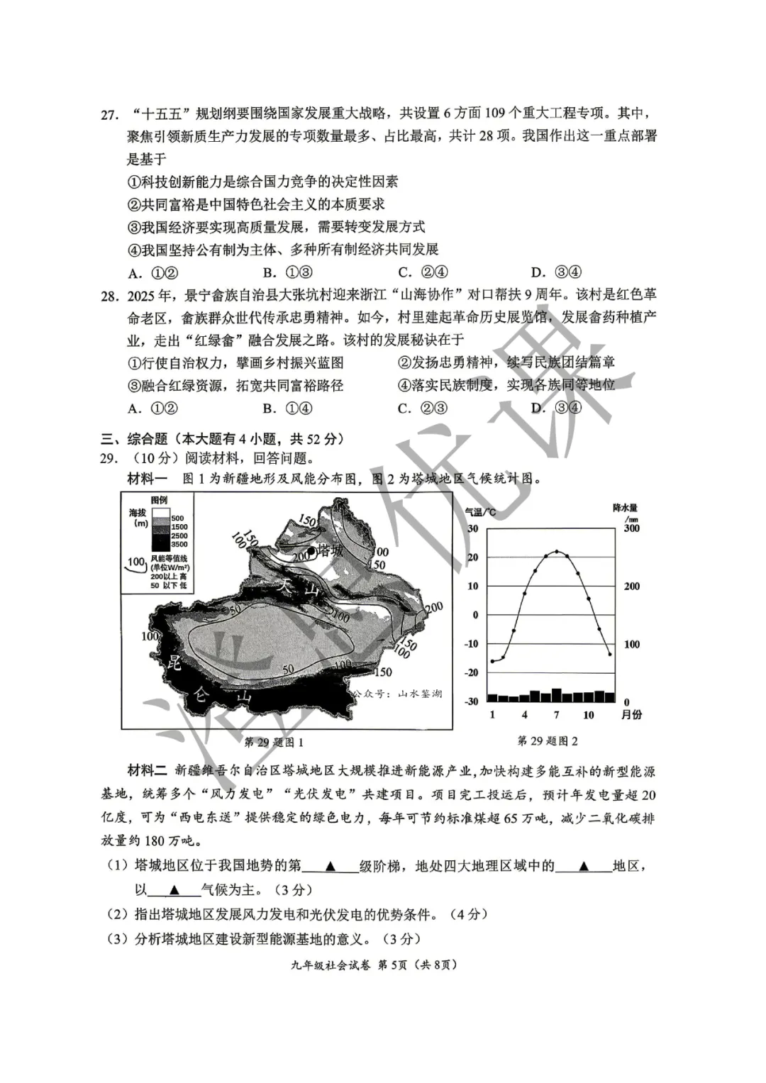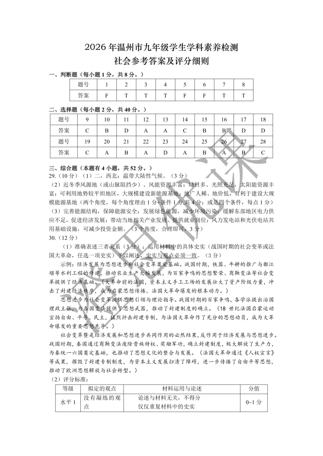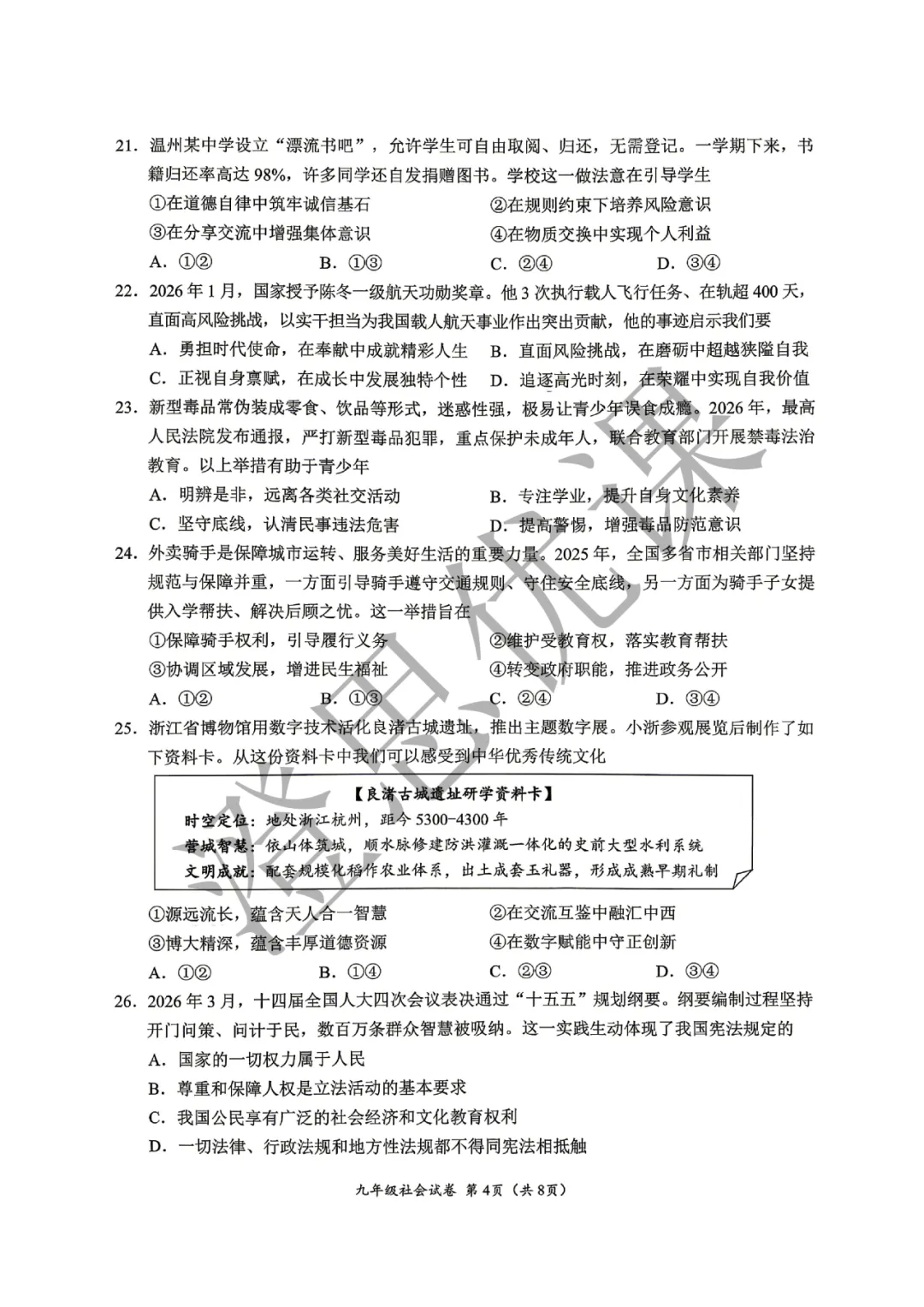 >浙江省温州市2026年4月中考一模试卷(社会)