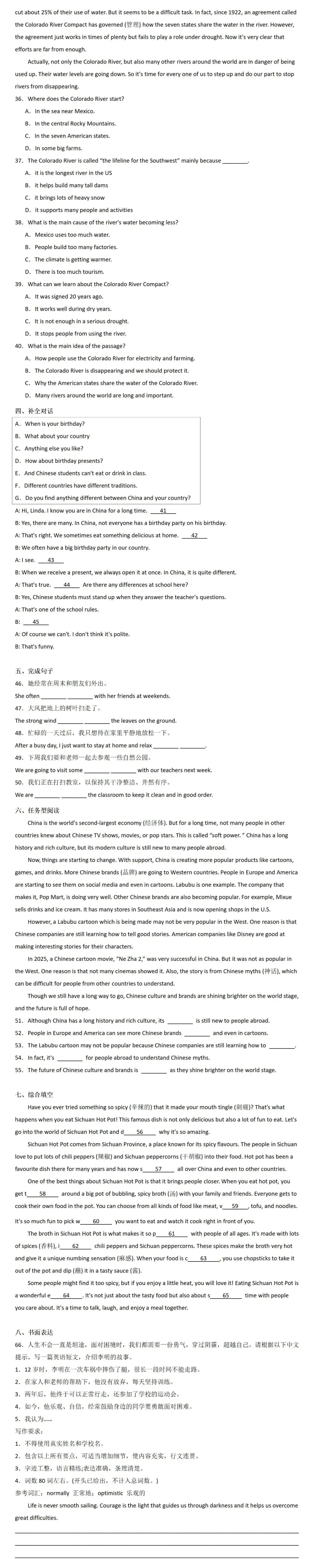 2026年天津市和平区中考一模英语试卷