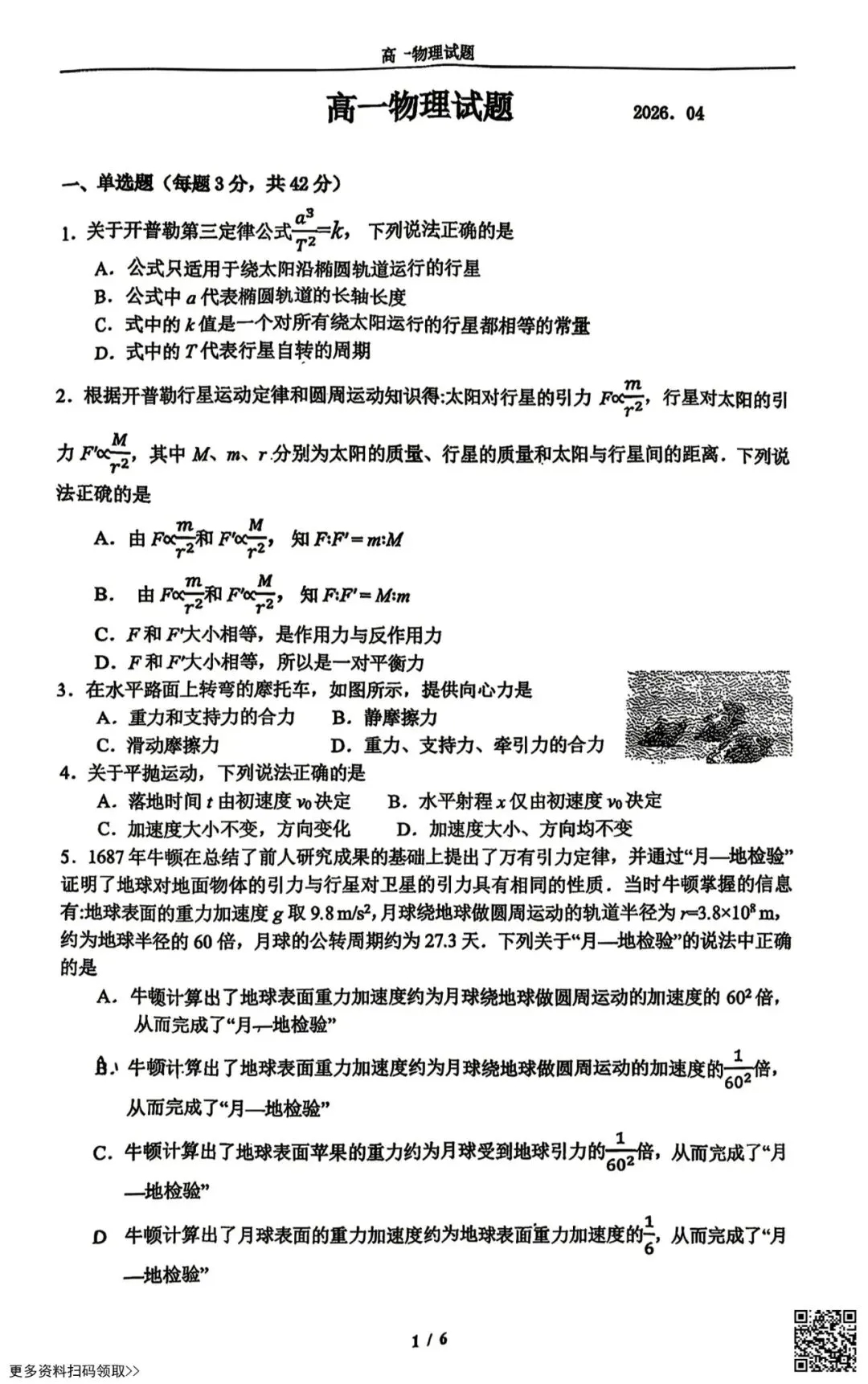 今天给大家分享的是2026北京顺义一中高一4月月考物理试卷(含答案),其他区域或学校的学生都可以练一练。近期会持续分享,欢迎大家多多关注,也可以把我们分享给更多人哦。