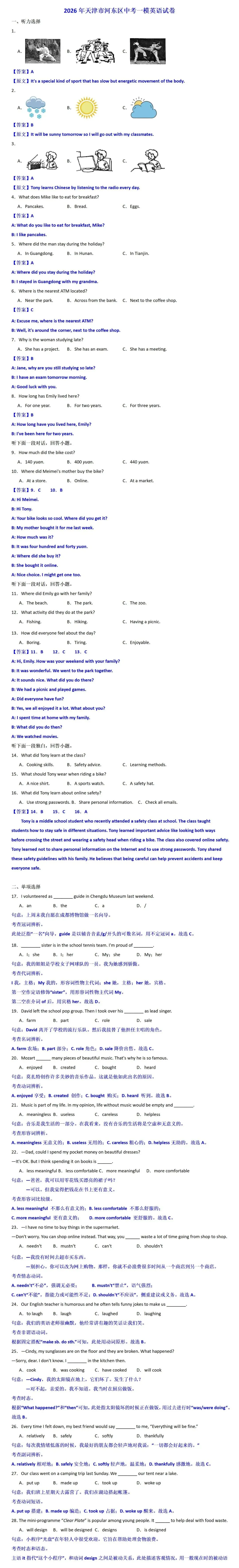 2026届上海市松江区初三二模英语试卷和答案解析(含音频)