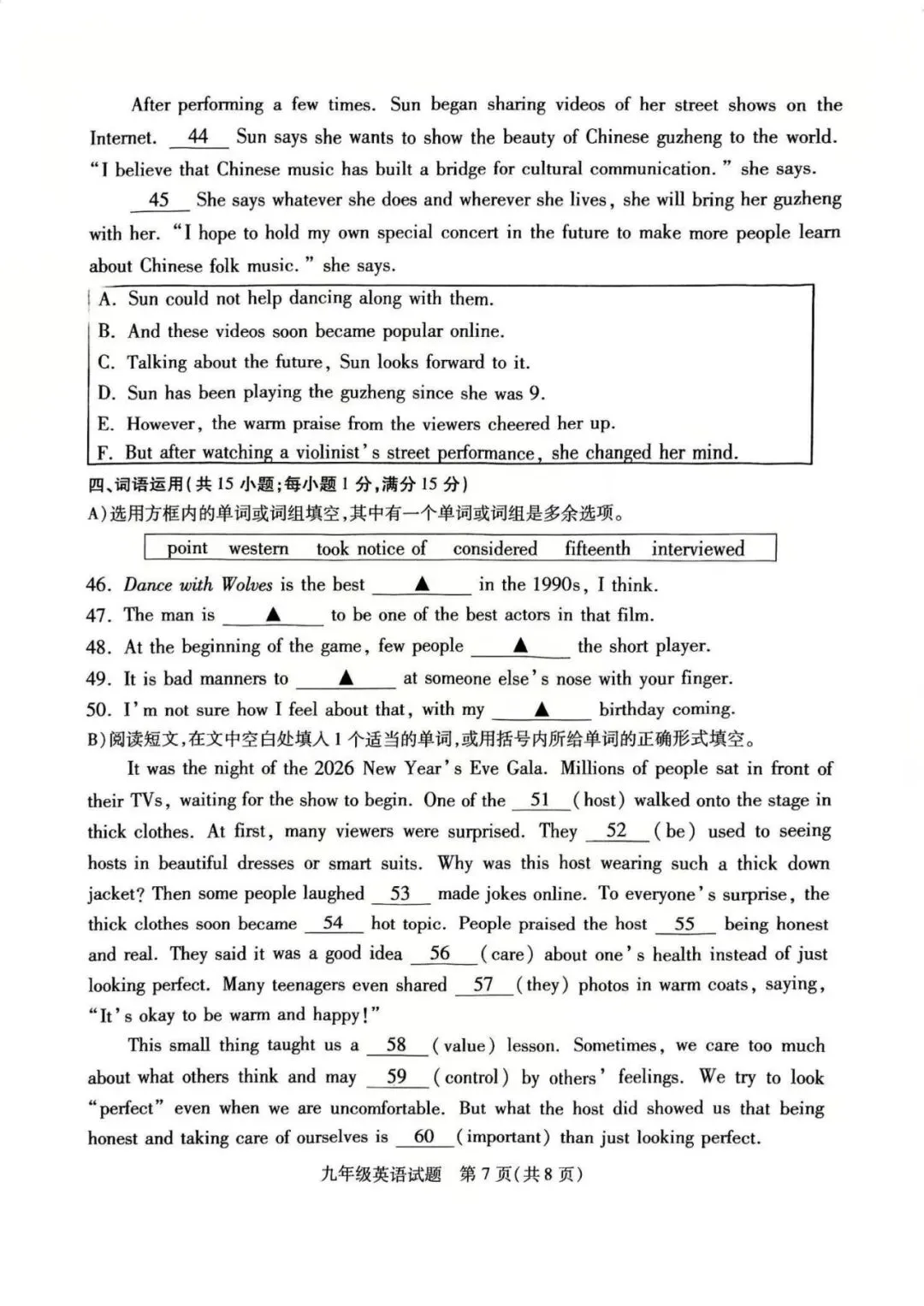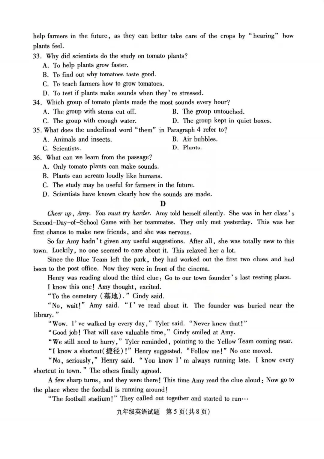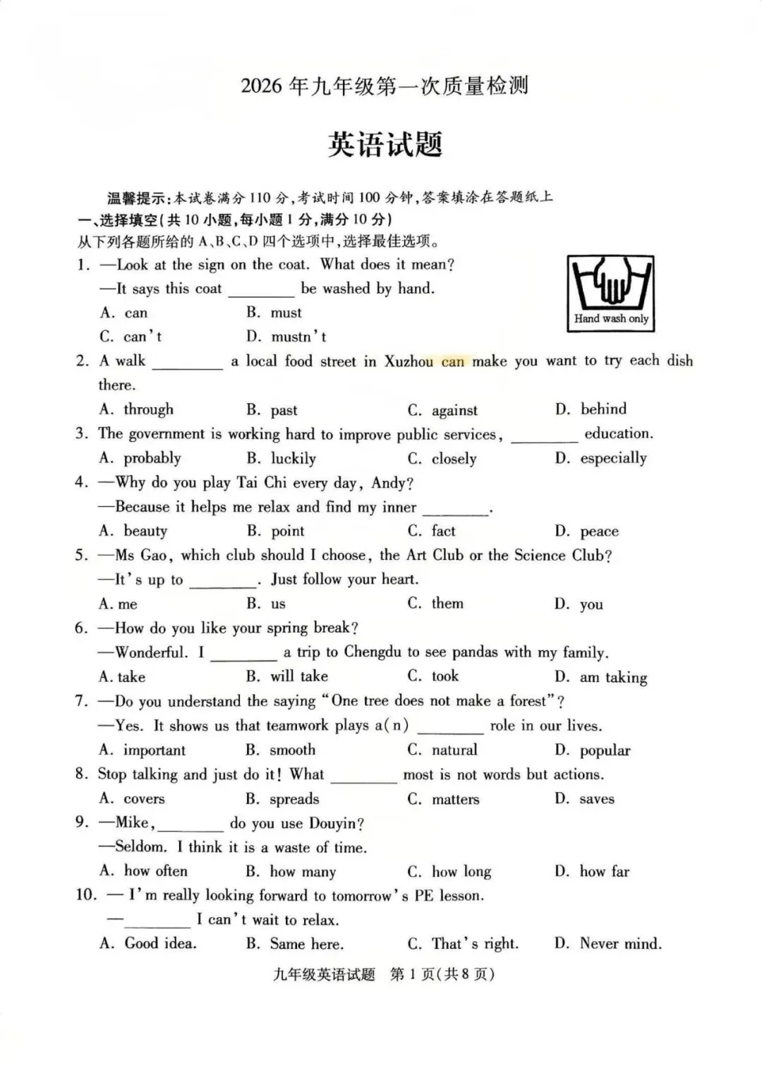 铜山区一模英语试卷