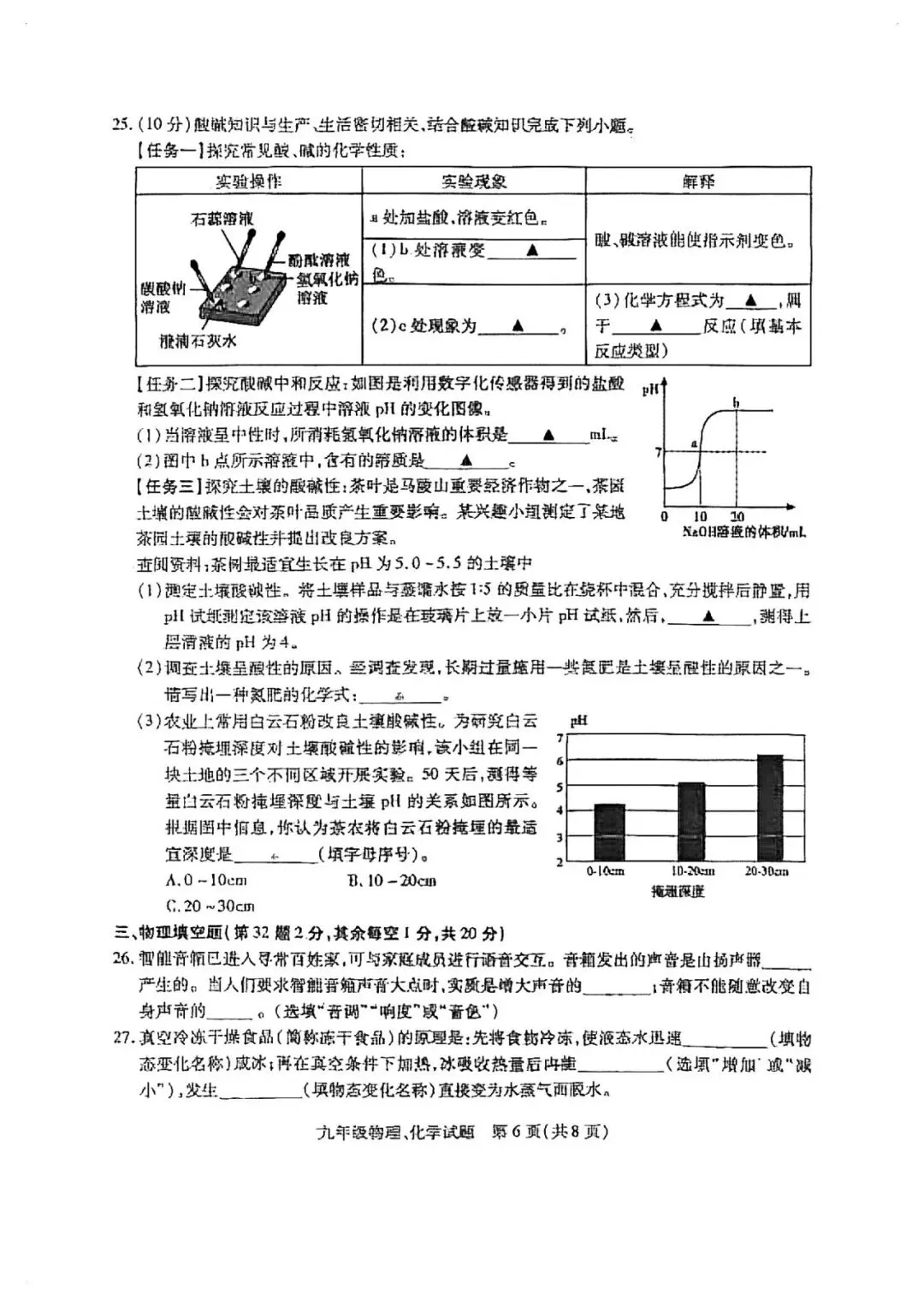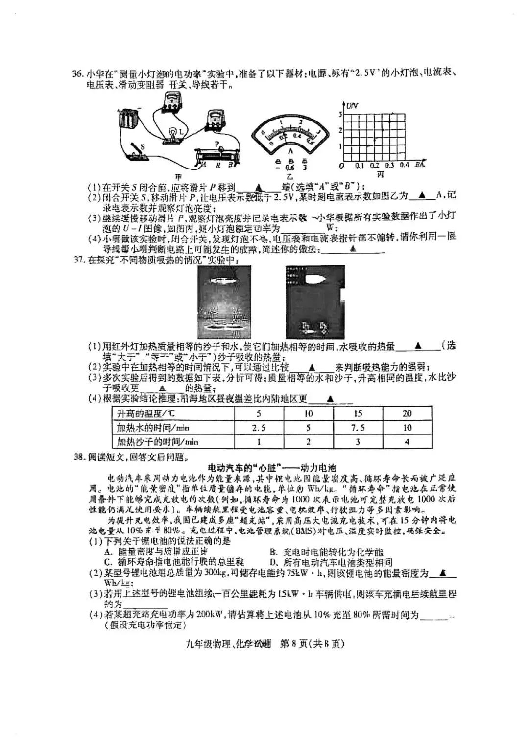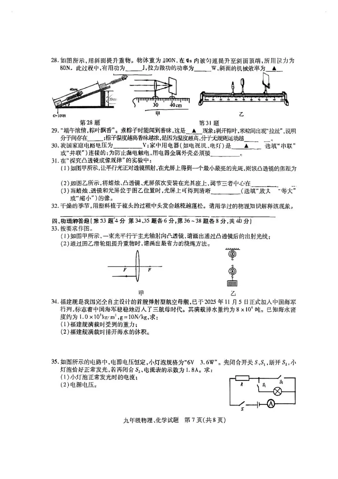铜山区一模物理、化学试卷