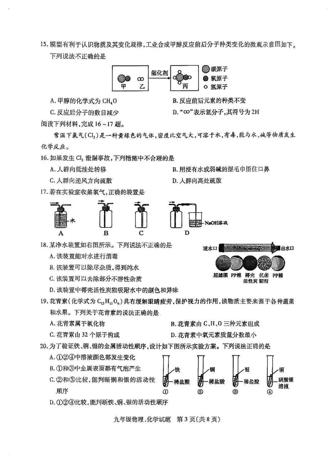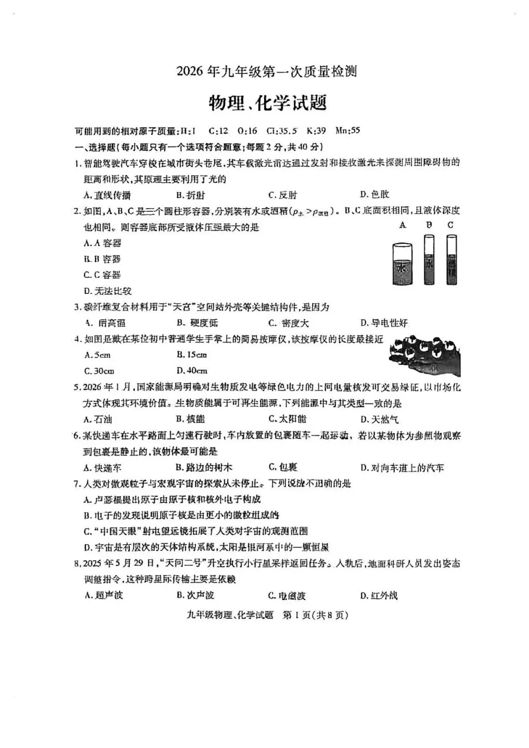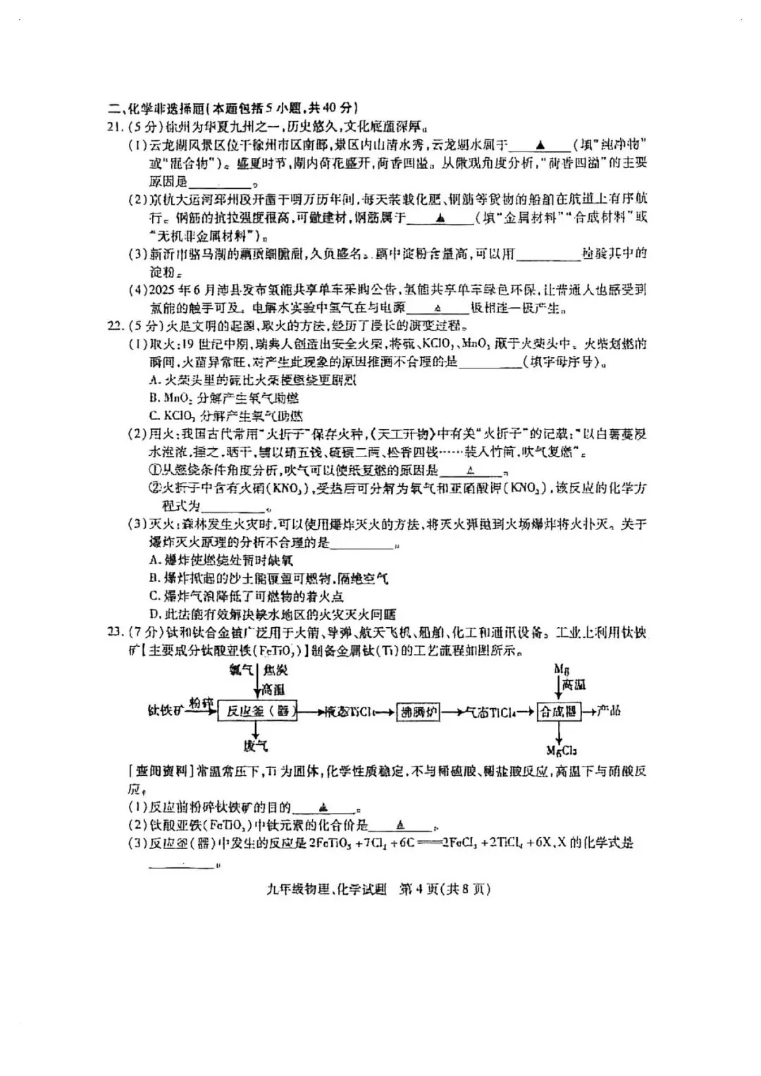 铜山区一模物理、化学试卷