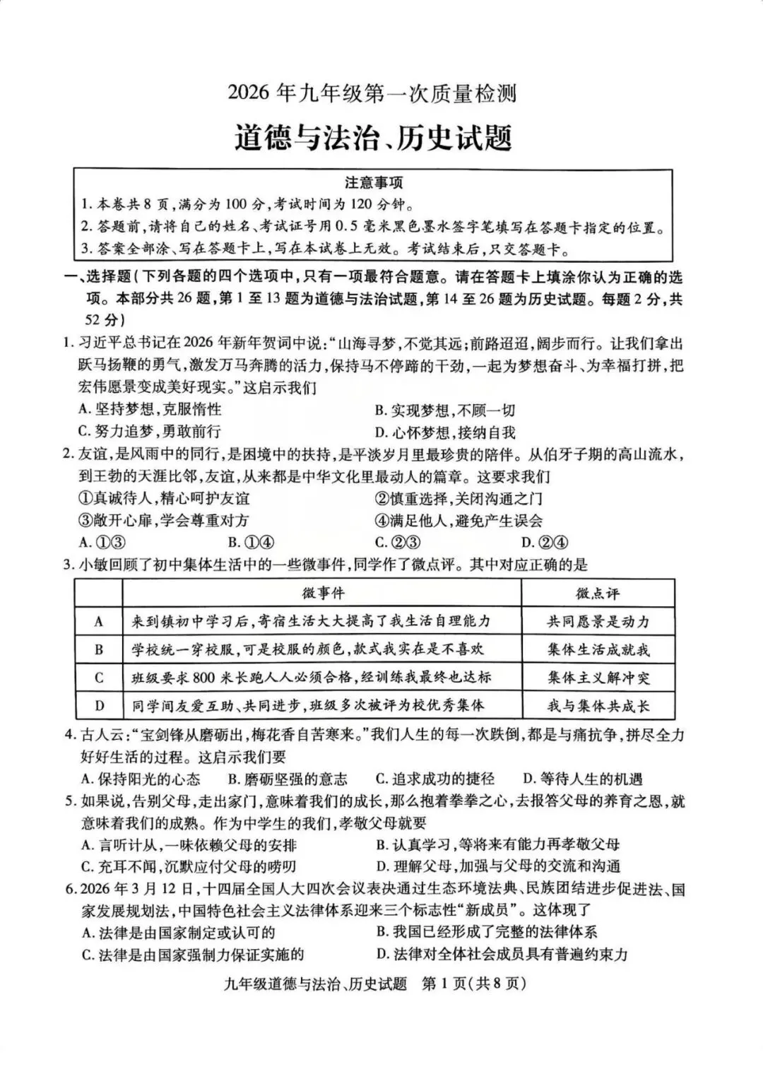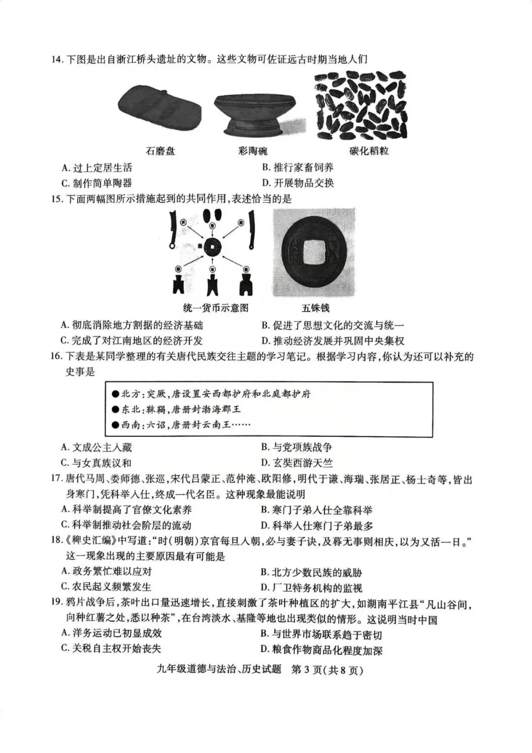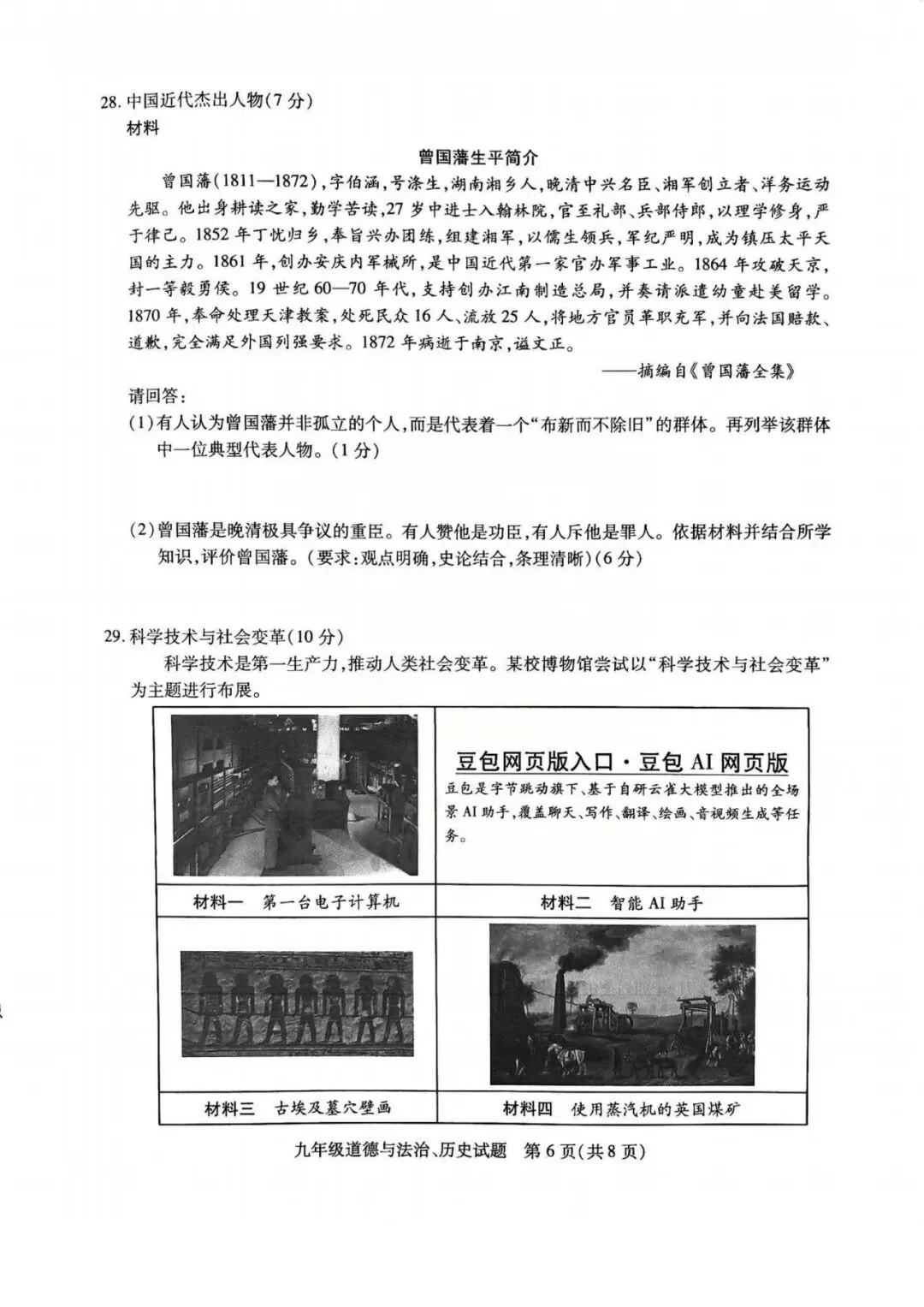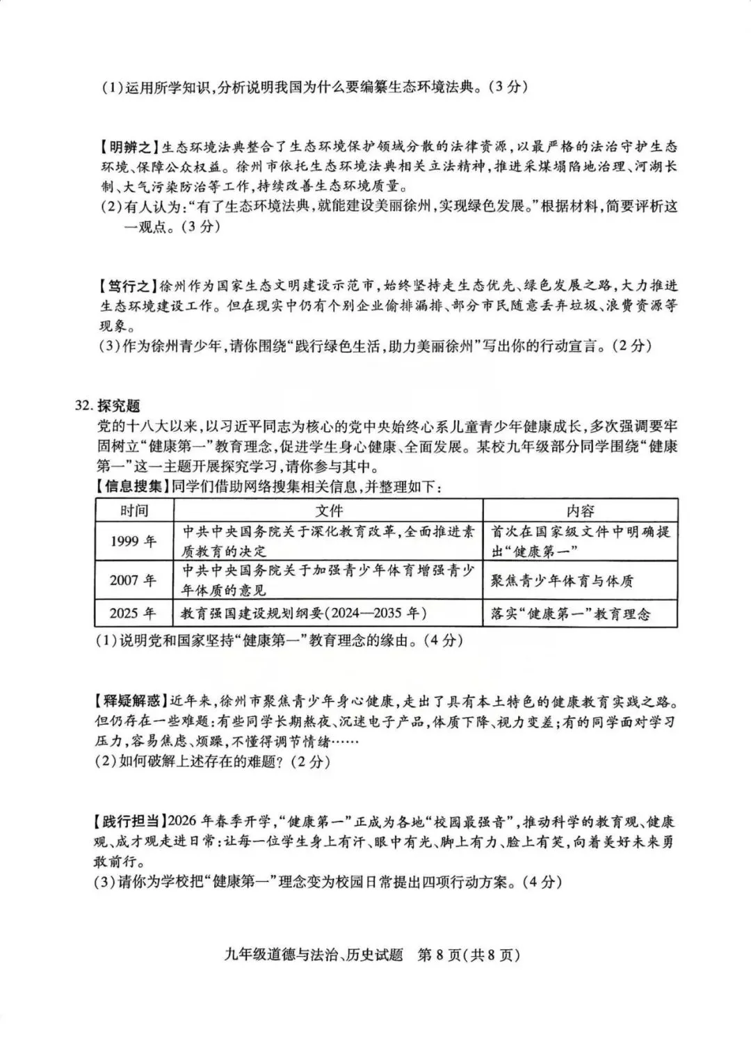 铜山区一模历史、政治试卷