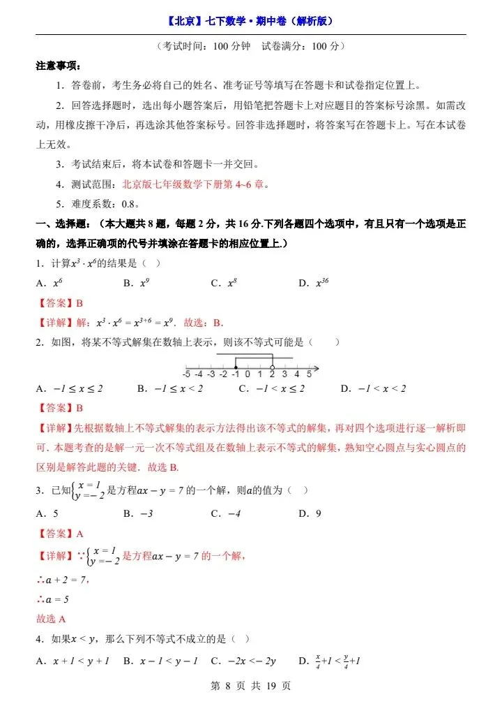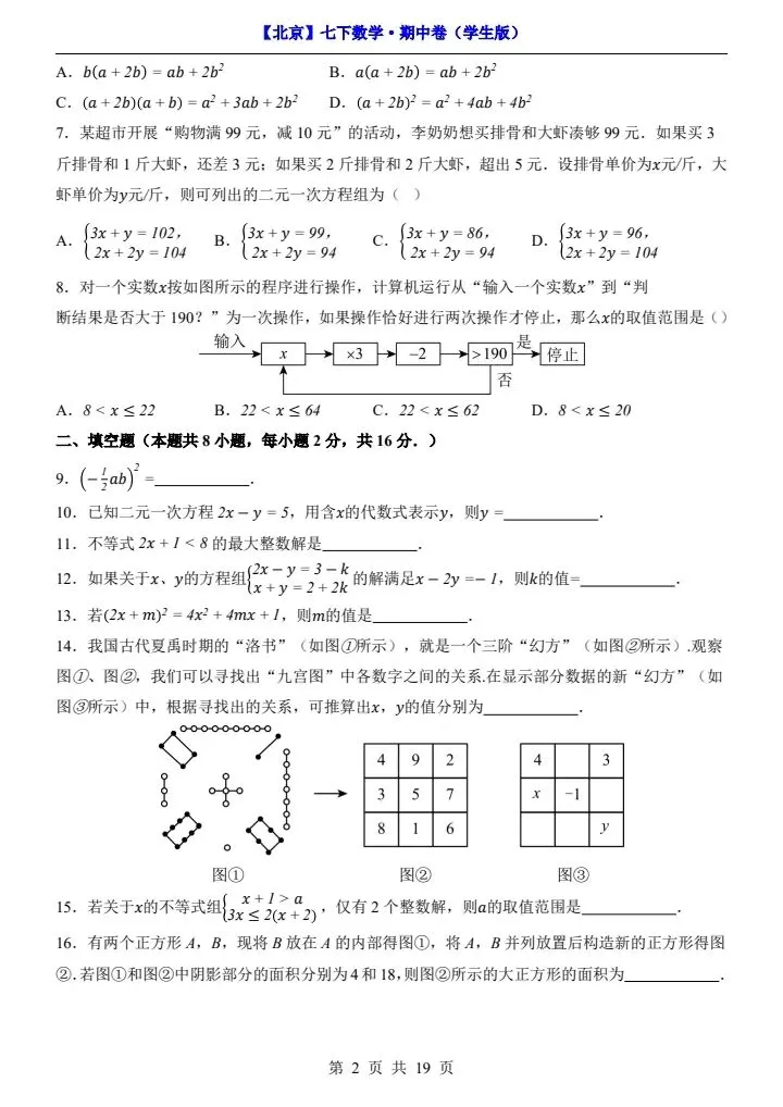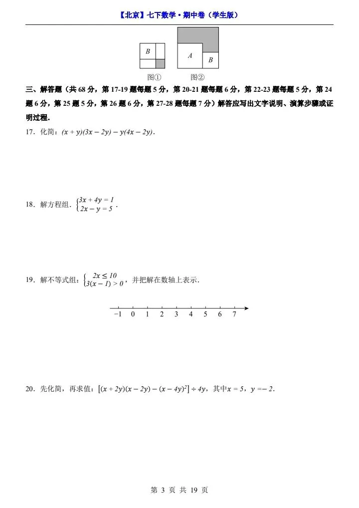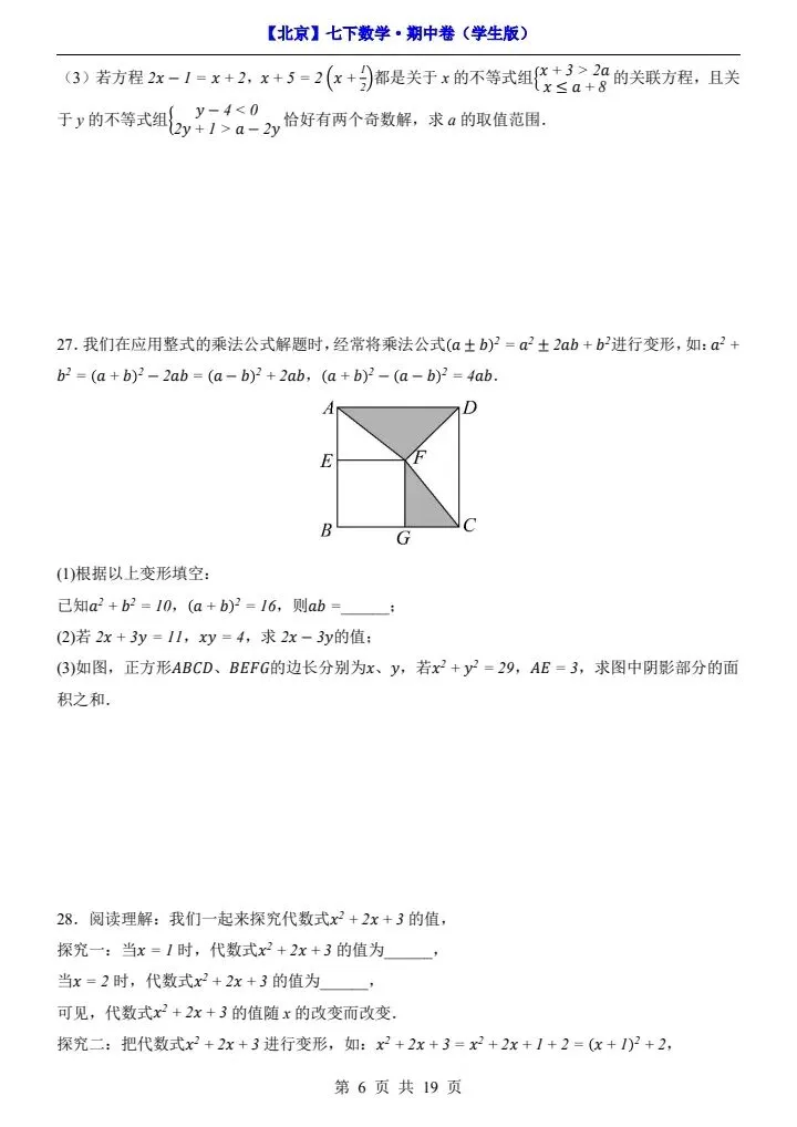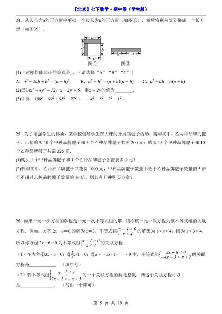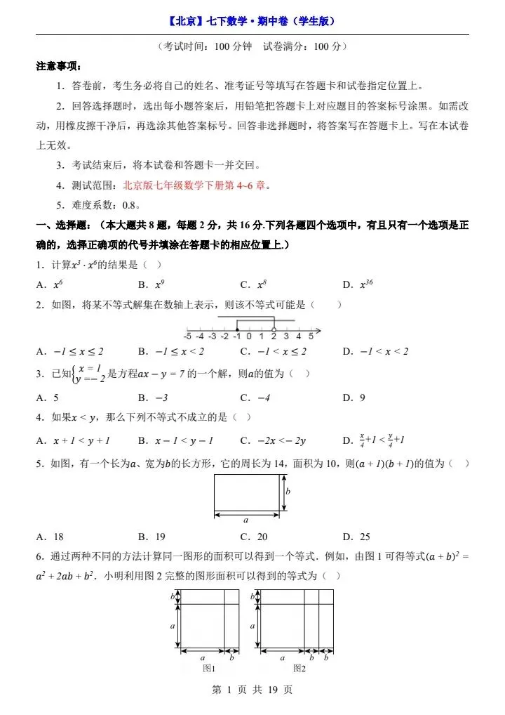 今日分享2026新七下北京数学期中试卷含答案+答题卡(完整电子版可打印)!高清可打印,每日轻量练习,拒绝无效刷题,用系统化资料筑牢学科基础,让假期成为提升的黄金期,开学轻松领跑。