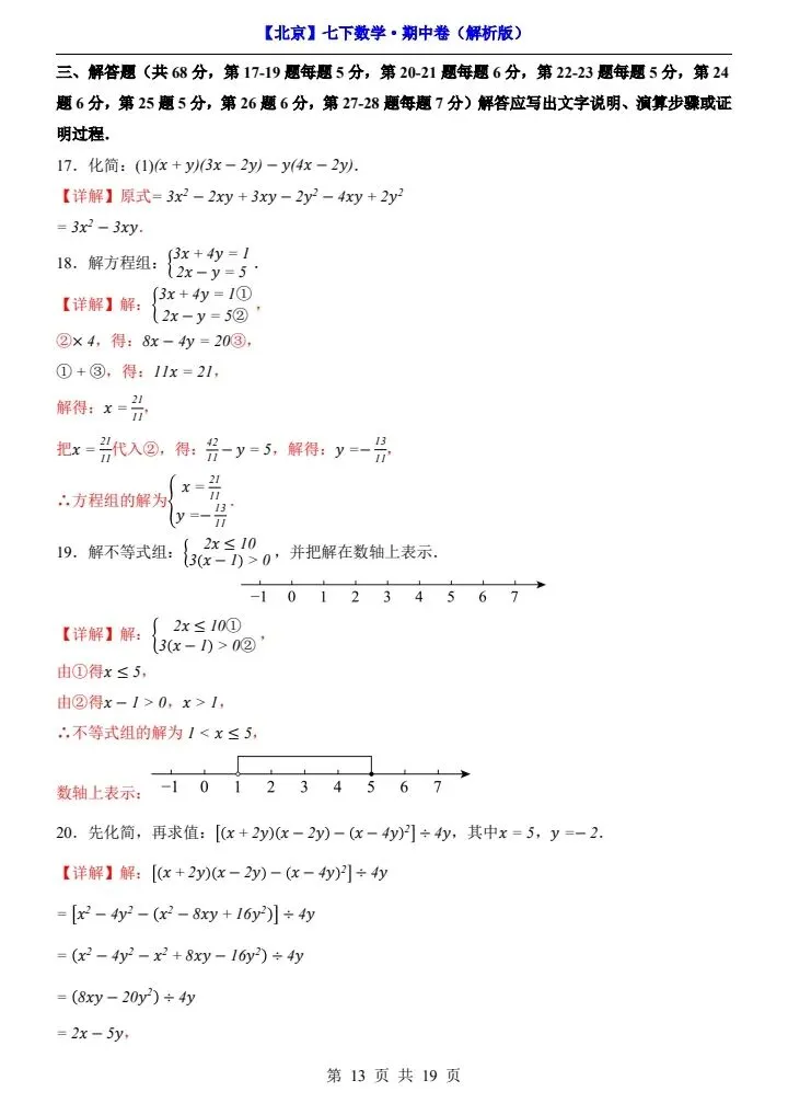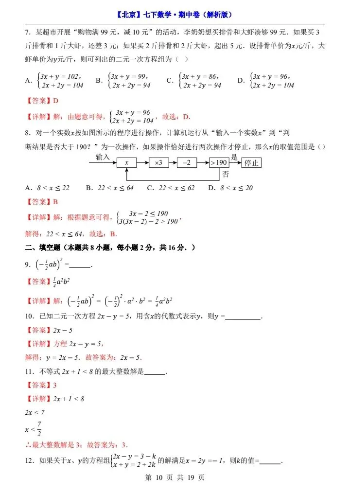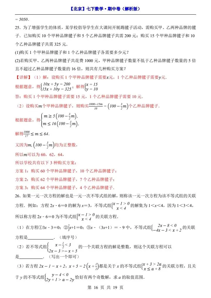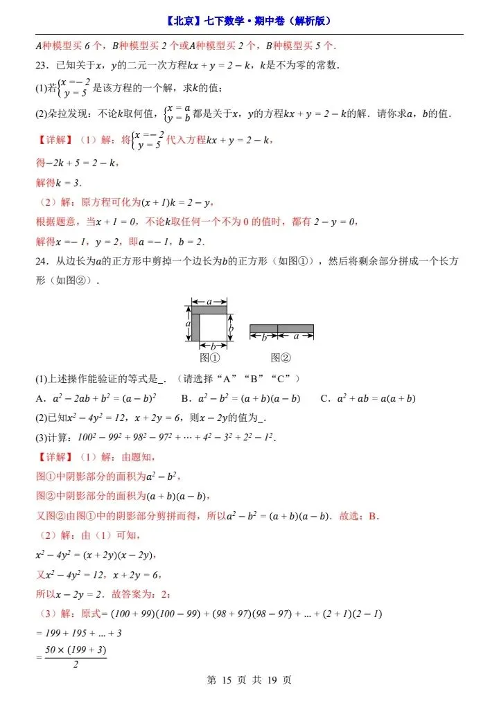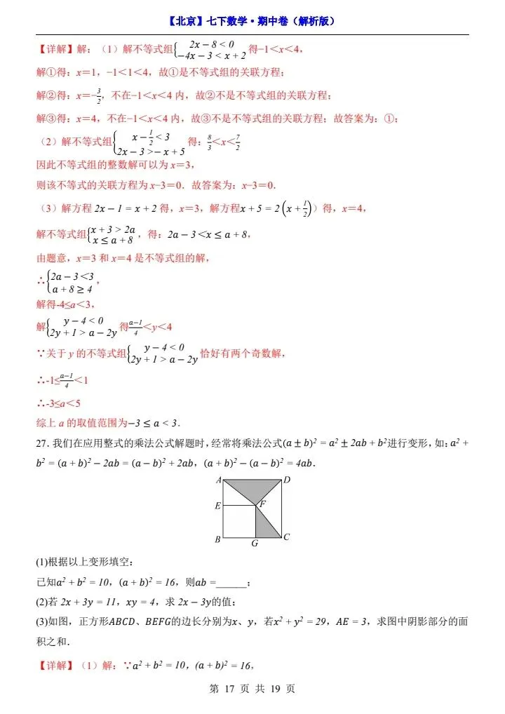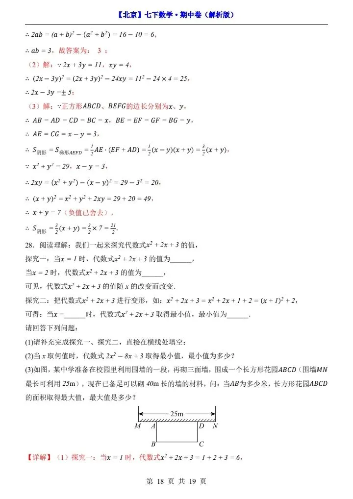 今日分享2026新七下北京数学期中试卷含答案+答题卡(完整电子版可打印)!高清可打印,每日轻量练习,拒绝无效刷题,用系统化资料筑牢学科基础,让假期成为提升的黄金期,开学轻松领跑。