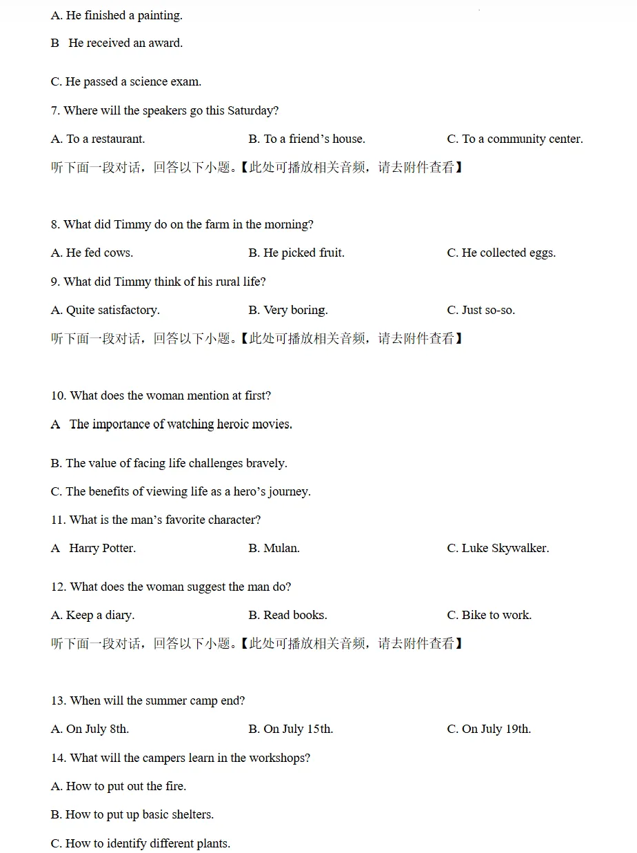 2026年天津市和平区中考一模英语试卷带答案