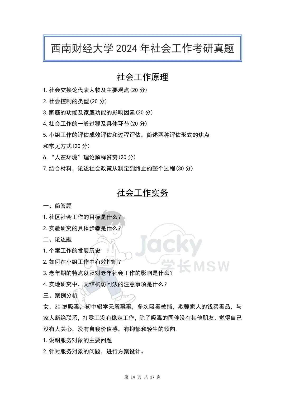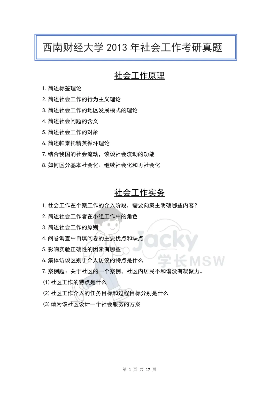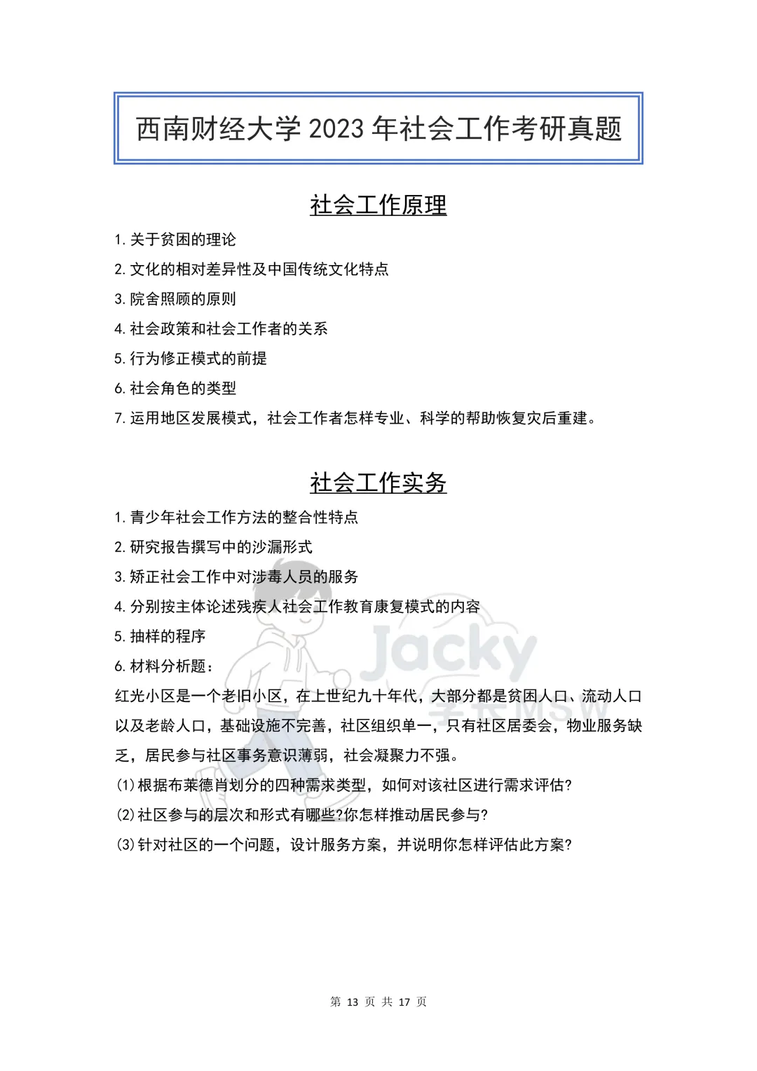 《2013-2026西南财经大学社会工作考研真题》
