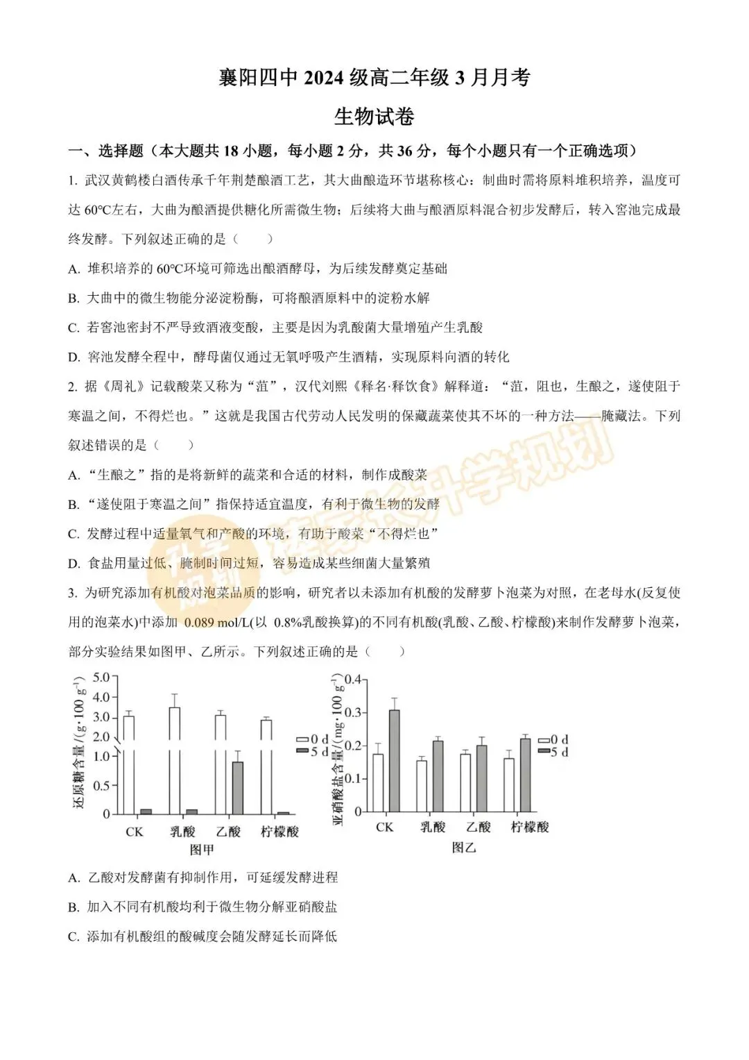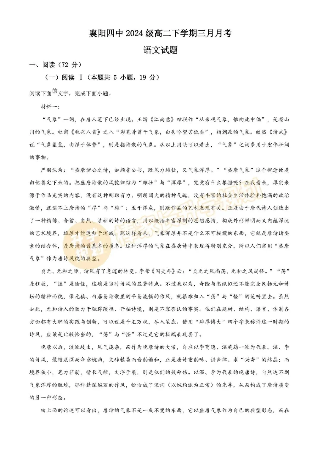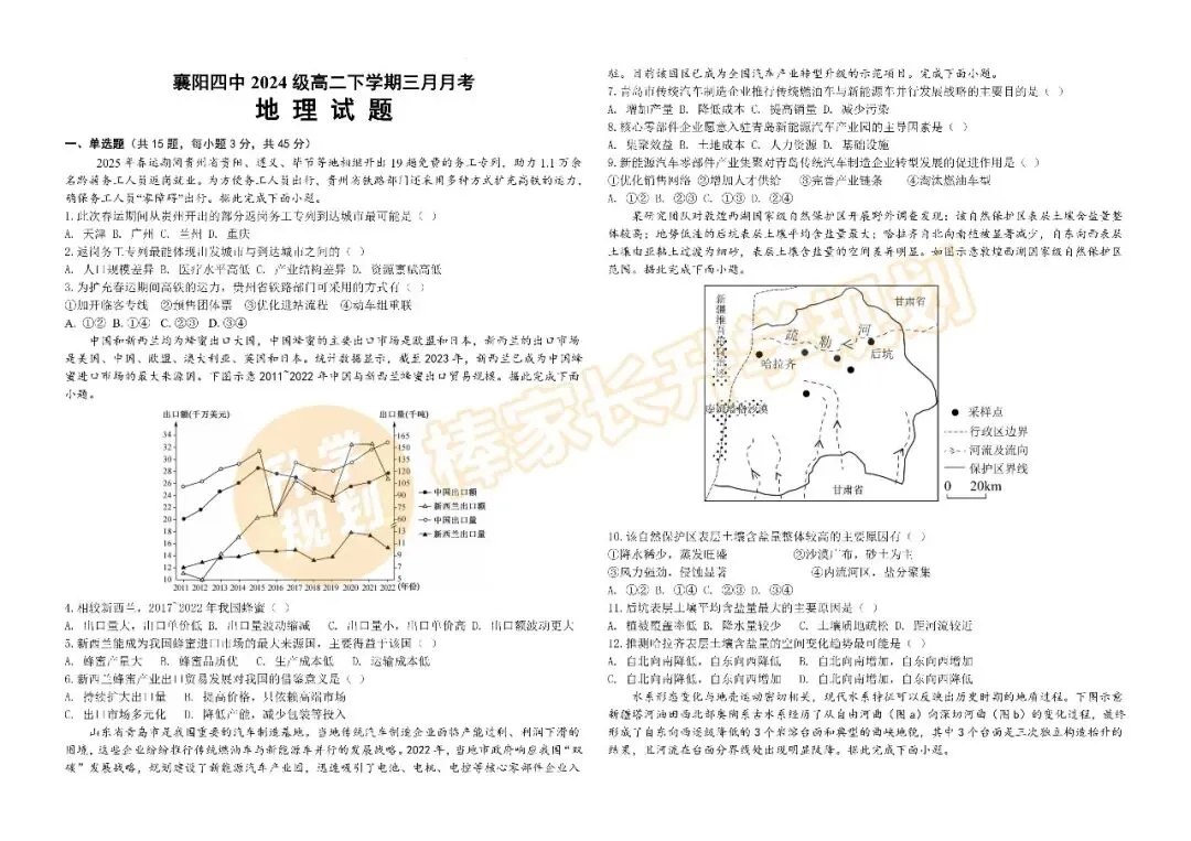 高一、高二楚天协作体期中联考: