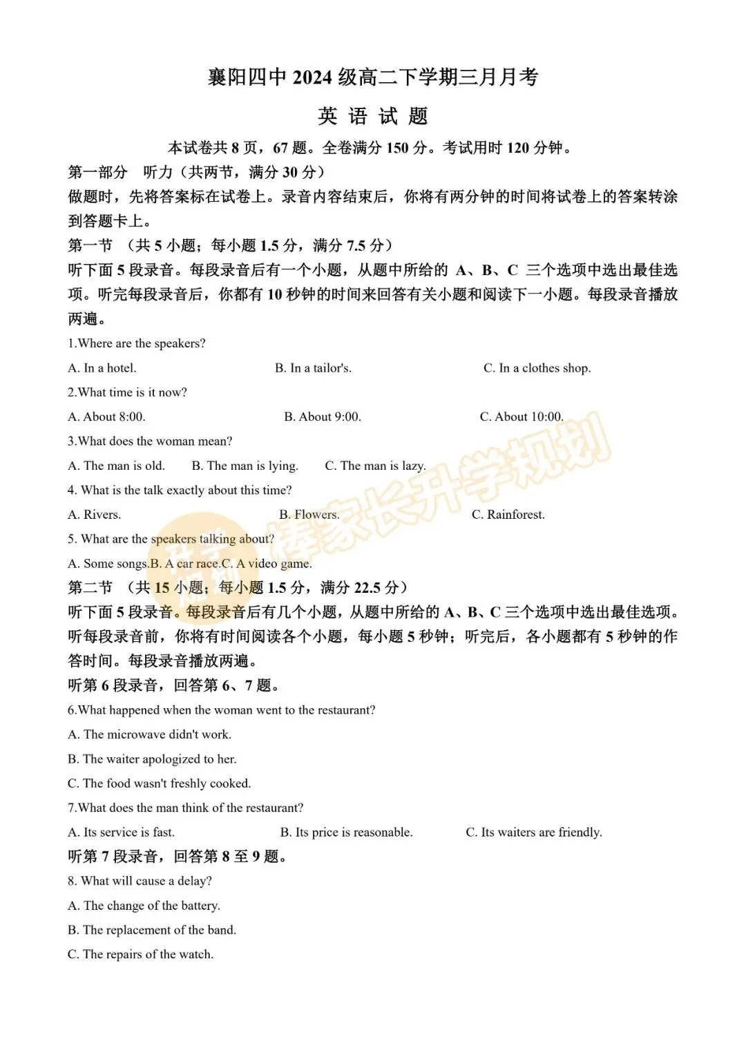 近期月考试卷及答案