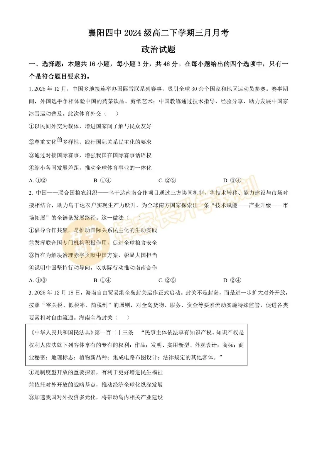 ④回复“高考”查看2025年湖北高考9科试卷真题