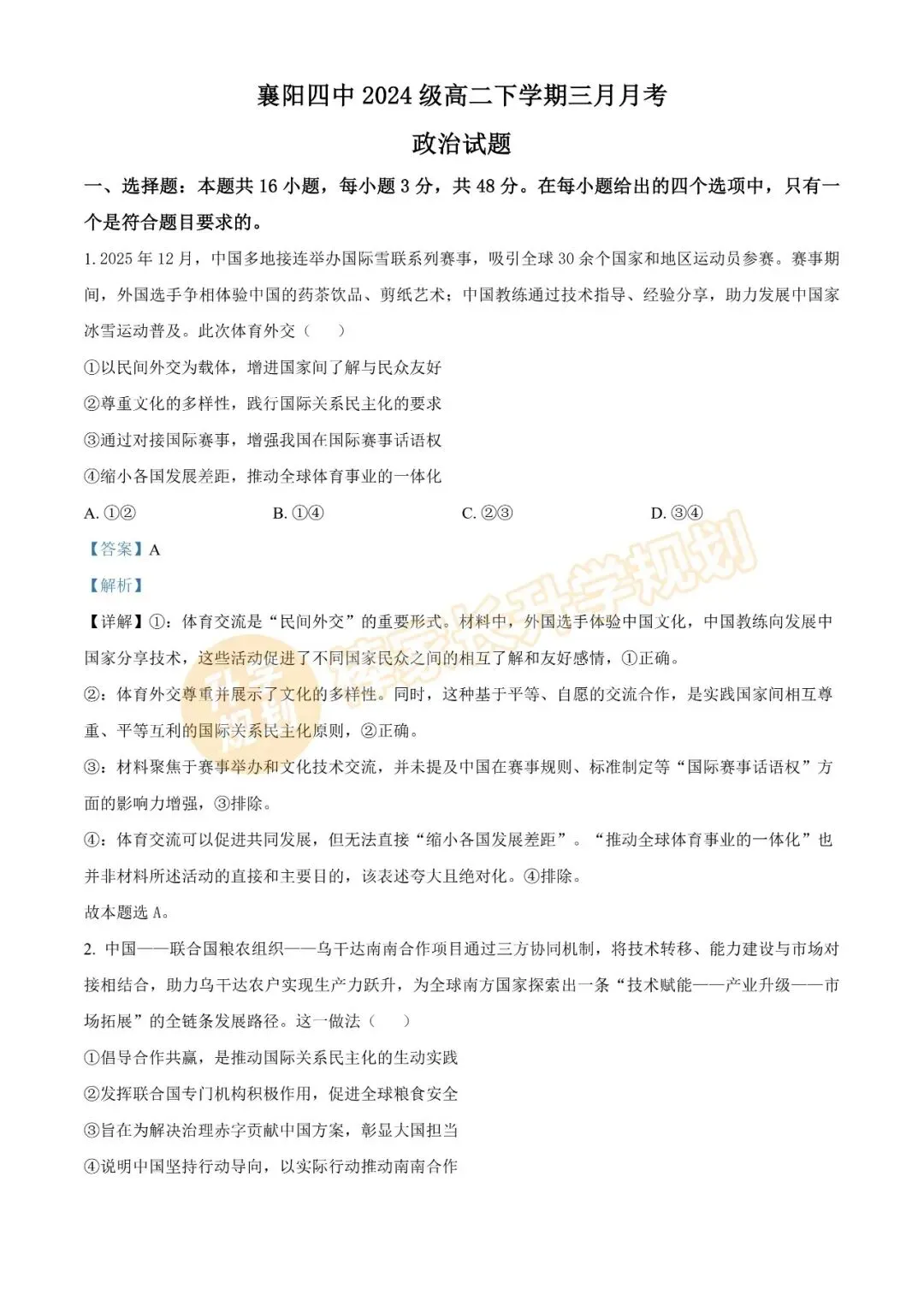 2026楚天协作体高一、高二期中考安排出炉!附各科试卷答案汇总!