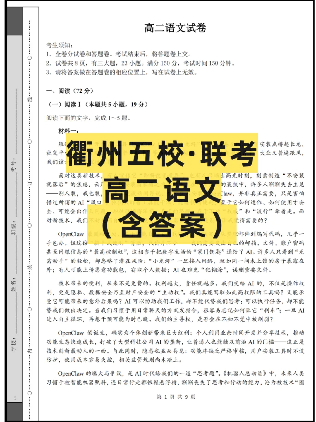衢州五校高二 4 月联考是阶段性重要检测,统一命题阅卷,能真实反映学科薄弱点。成绩可对标五校整体水平,帮助找准位次,为选科调整、查漏补缺、规划高三复习方向提供关键参考。
