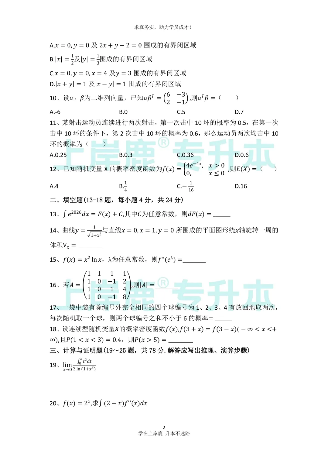 以上就是关于2026安徽专升本高数考试真题的相关内容,需要答案解析的同学可以私信小鹿哟!备考期间可以关注小鹿,第一时间获取最新消息~