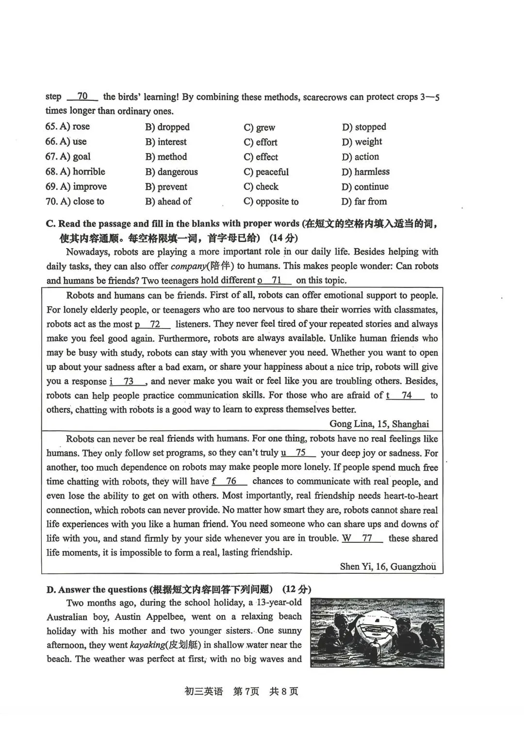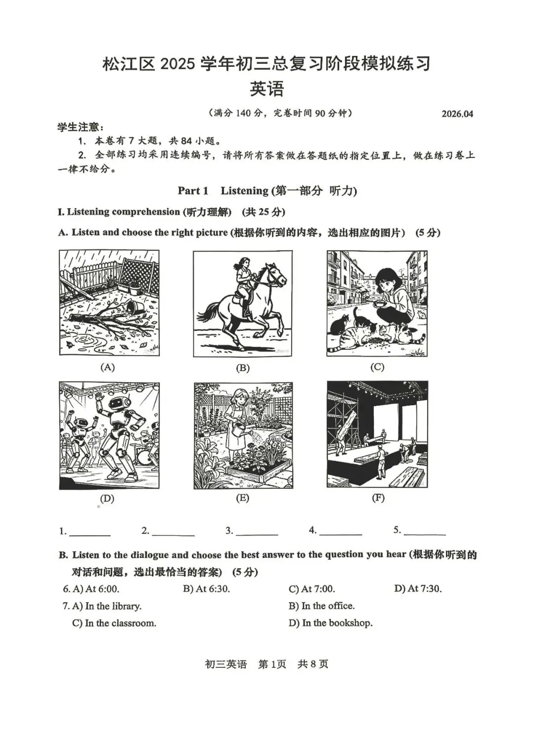 >【试卷分享】2026年上海市松江区初三英语二模试卷+官方解析答案版