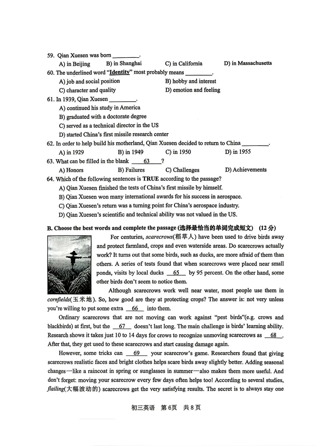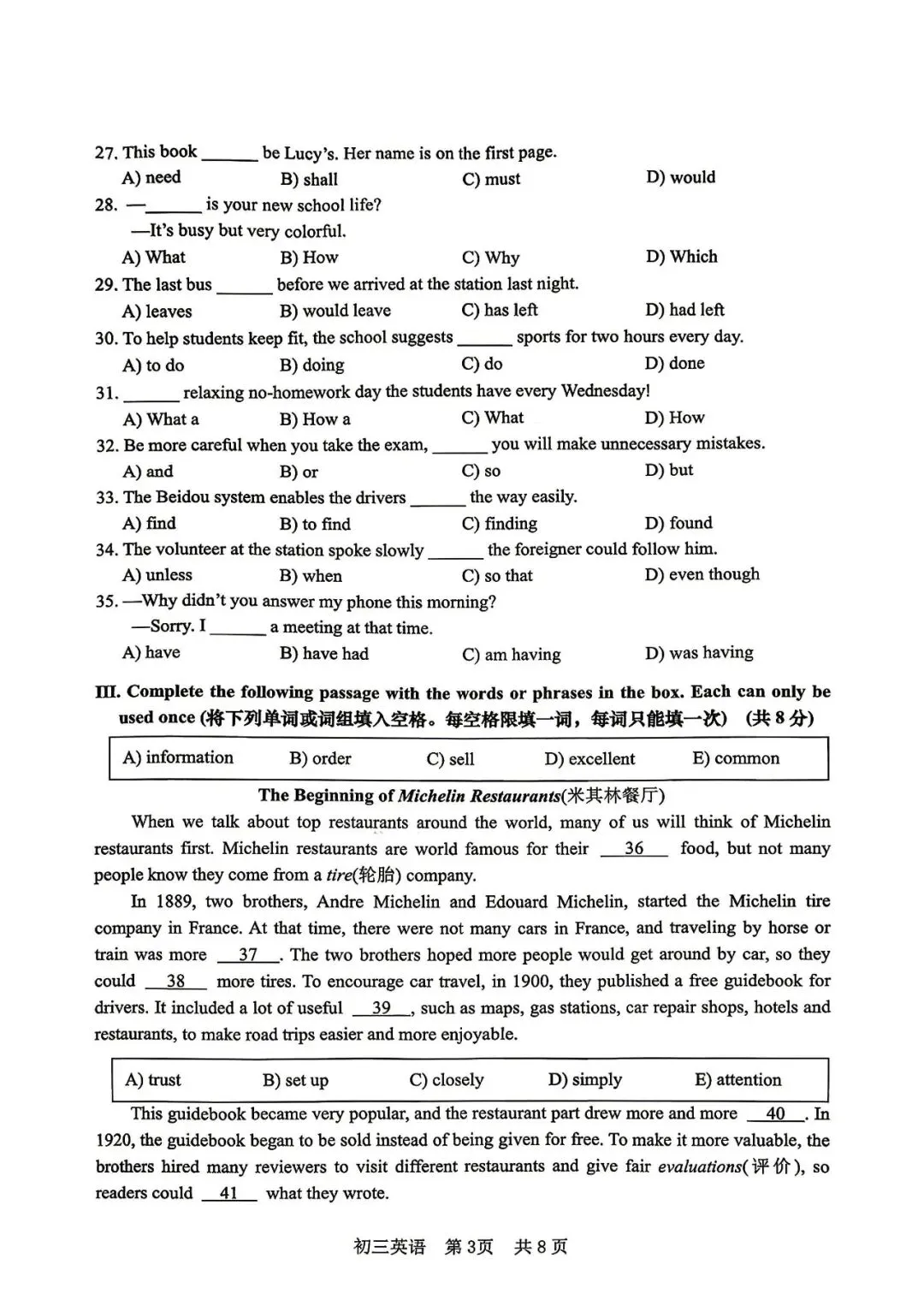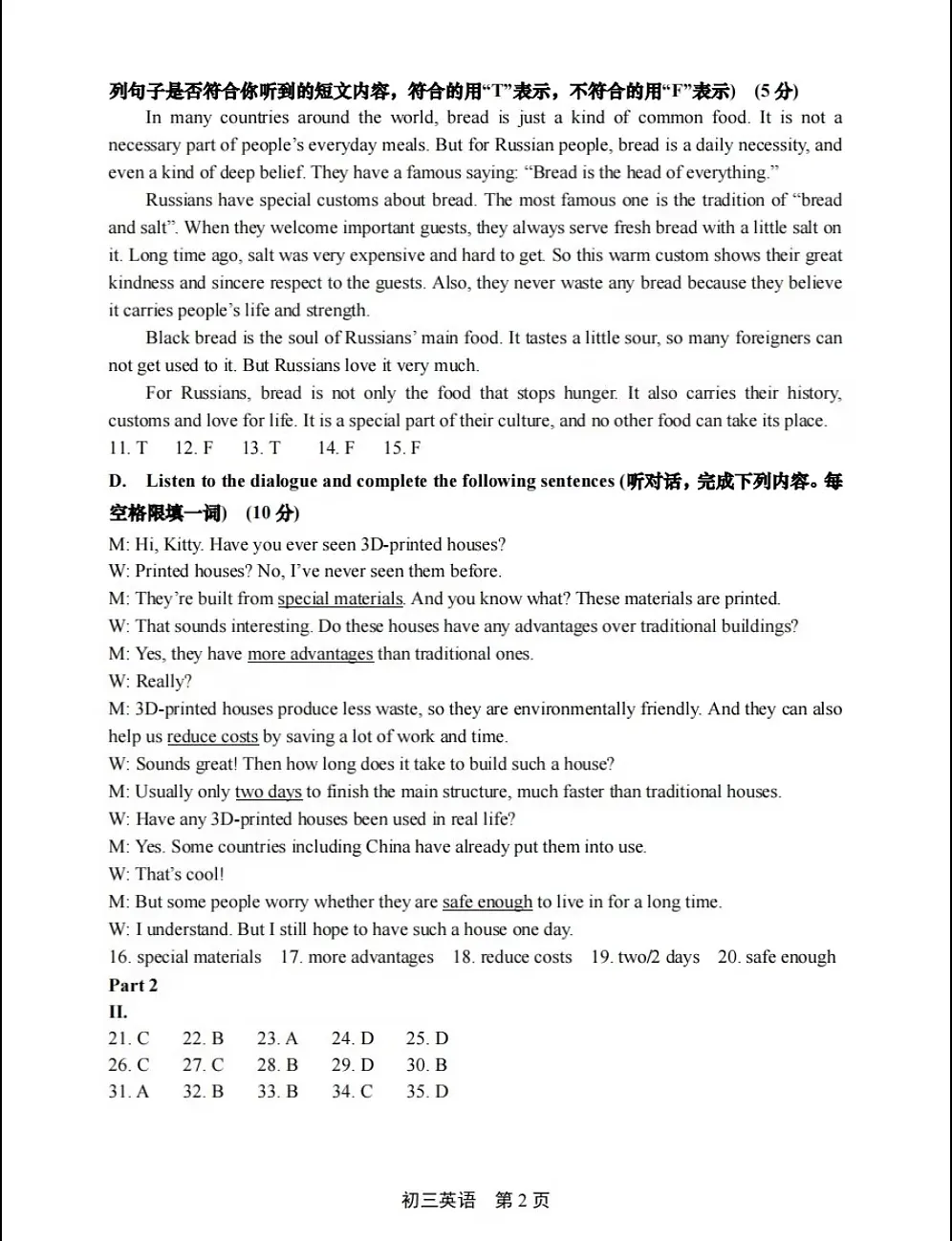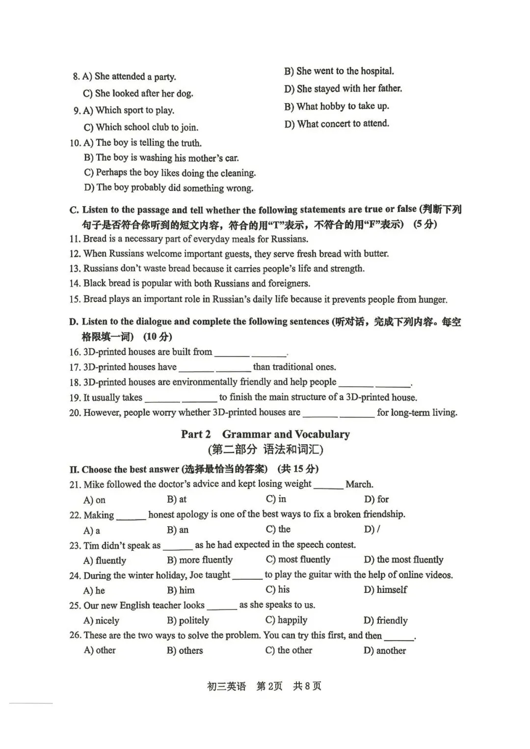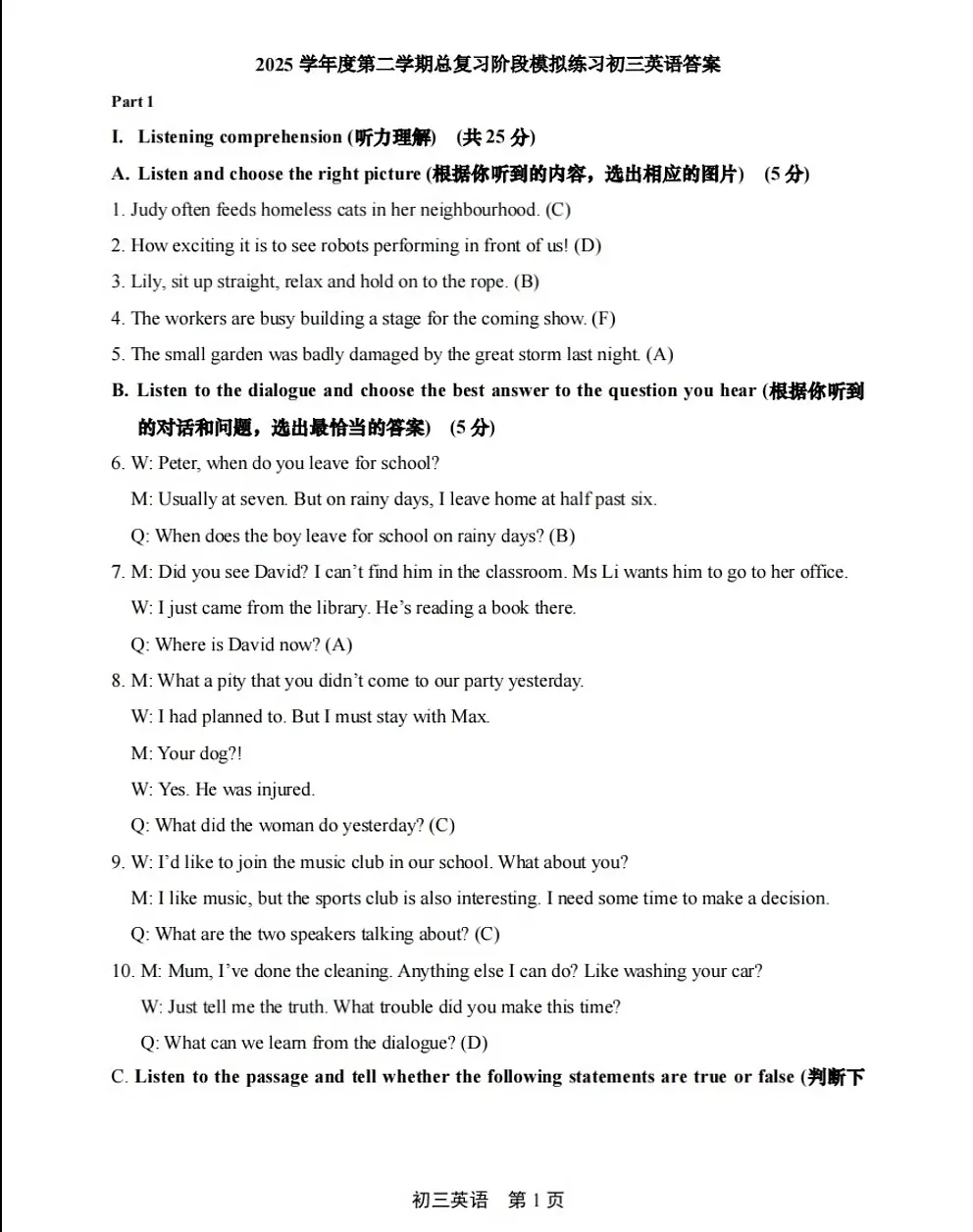 【9三模】C20教育联盟三模试卷及答案含听力(语文、数学、英语、物理、化学、历史、道法)附英语解析