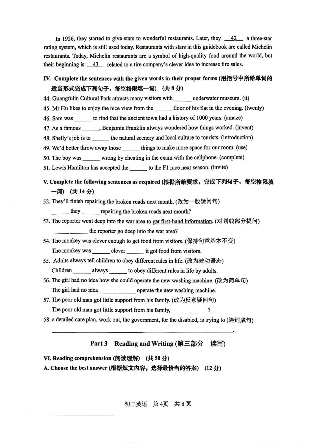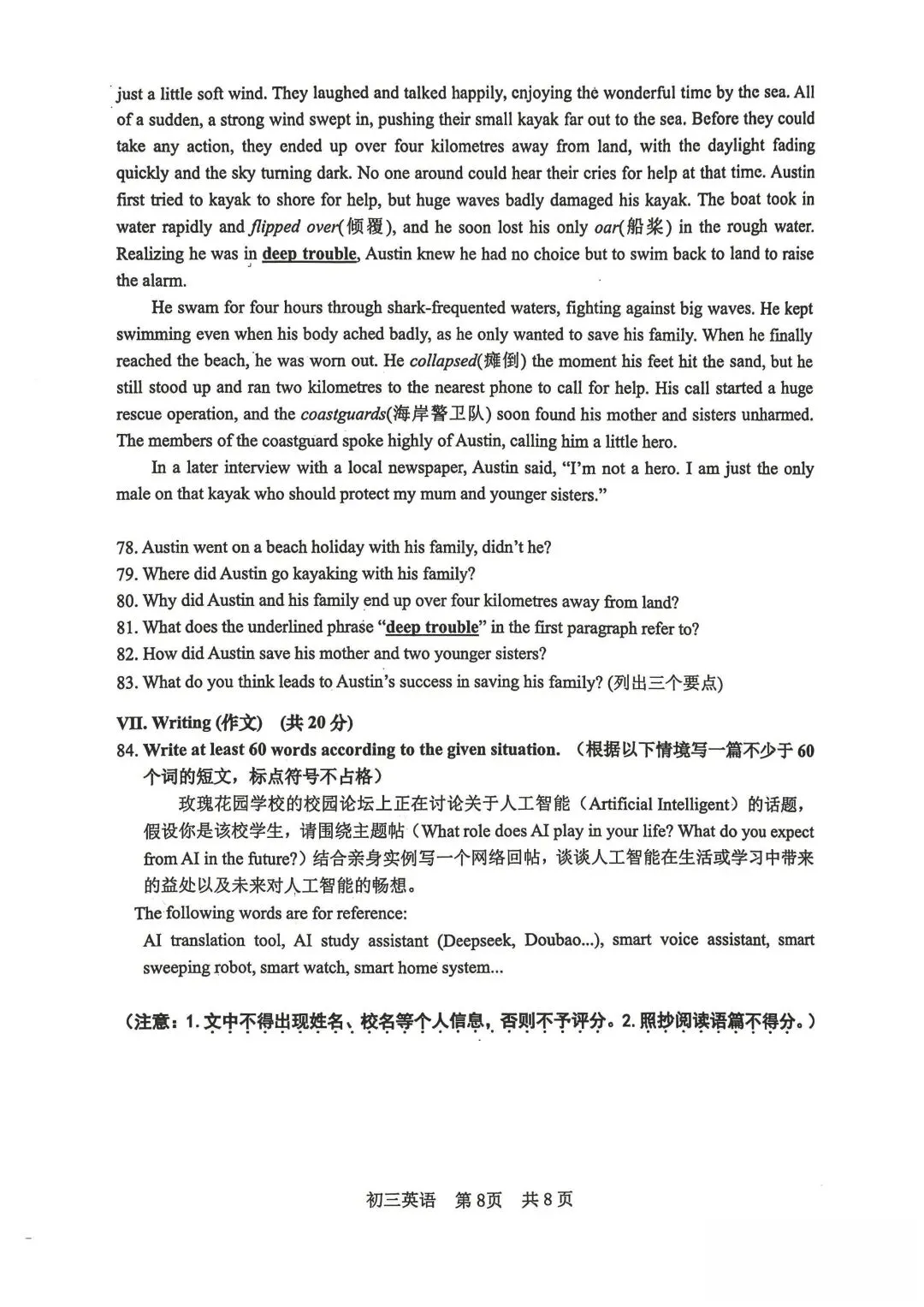2026上海松江区八年级期中试卷 语数英真题 + 参考答案分享