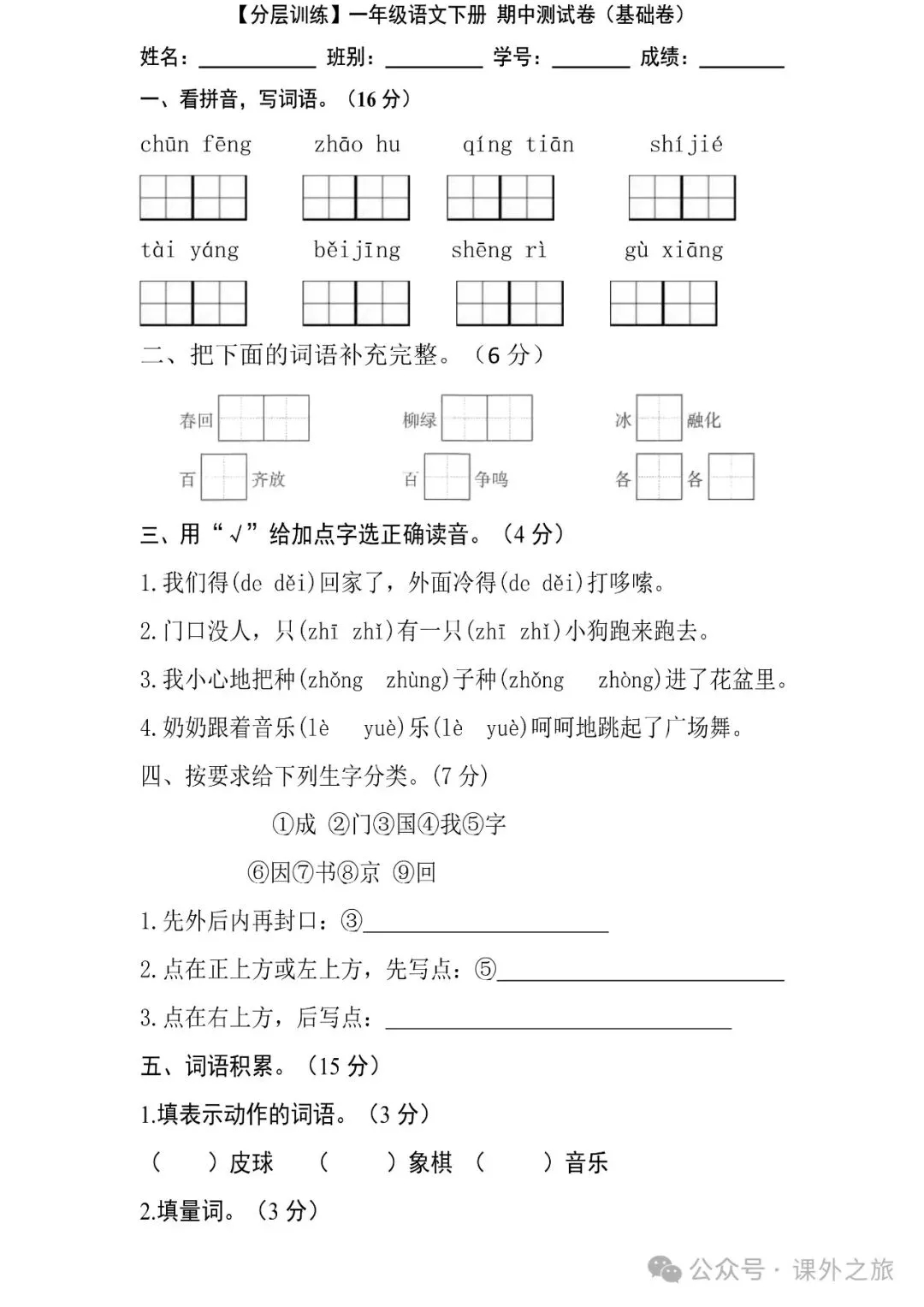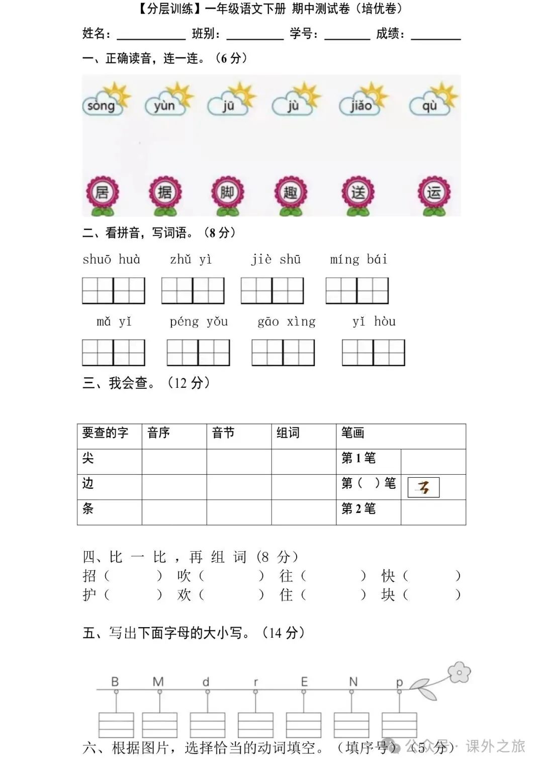 冬冬老师今天给大家整理了统编版语文一年级(下册)期中试卷(含答案),请各位家长打印给孩子练练,更好的巩固所学的知识点!