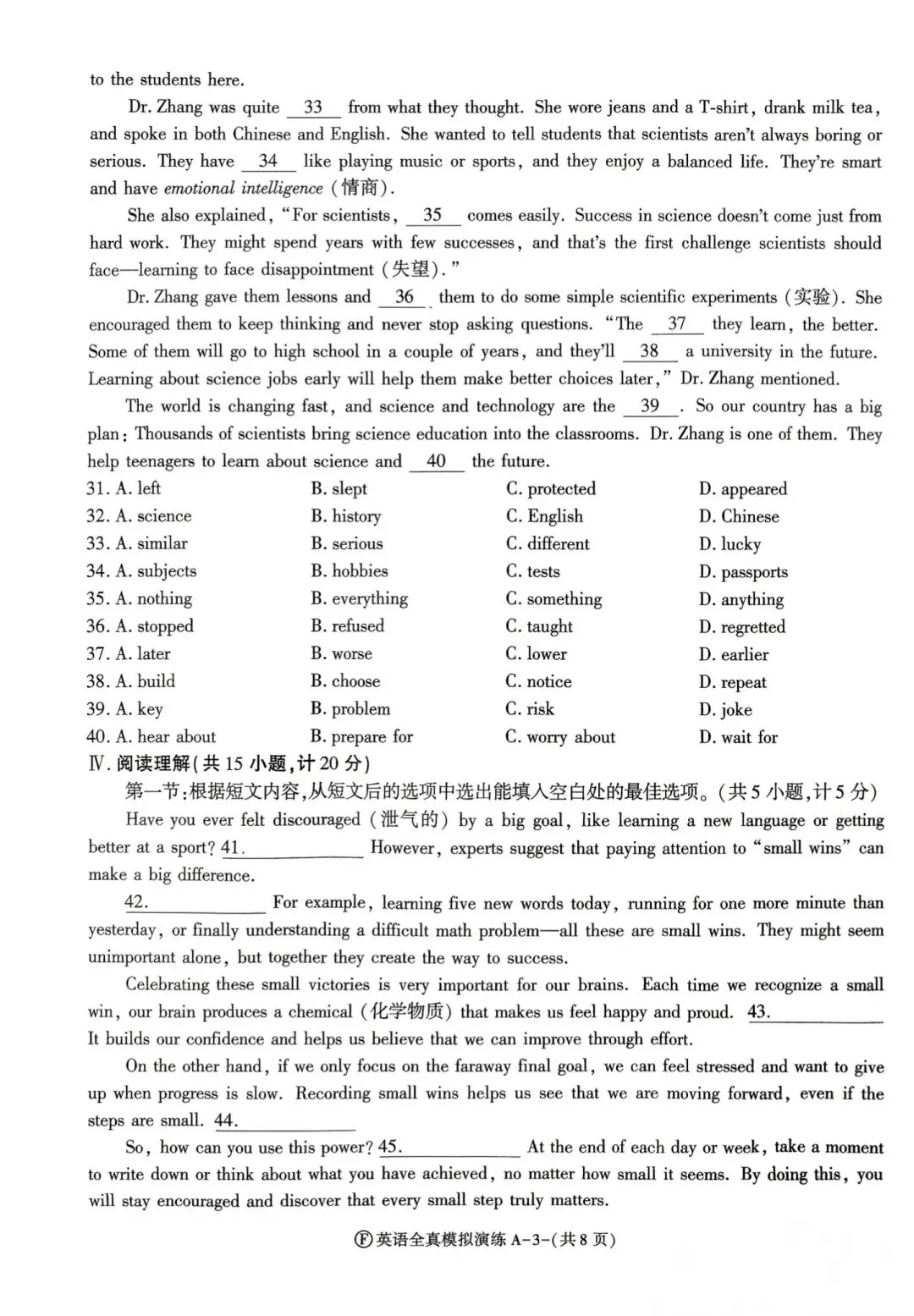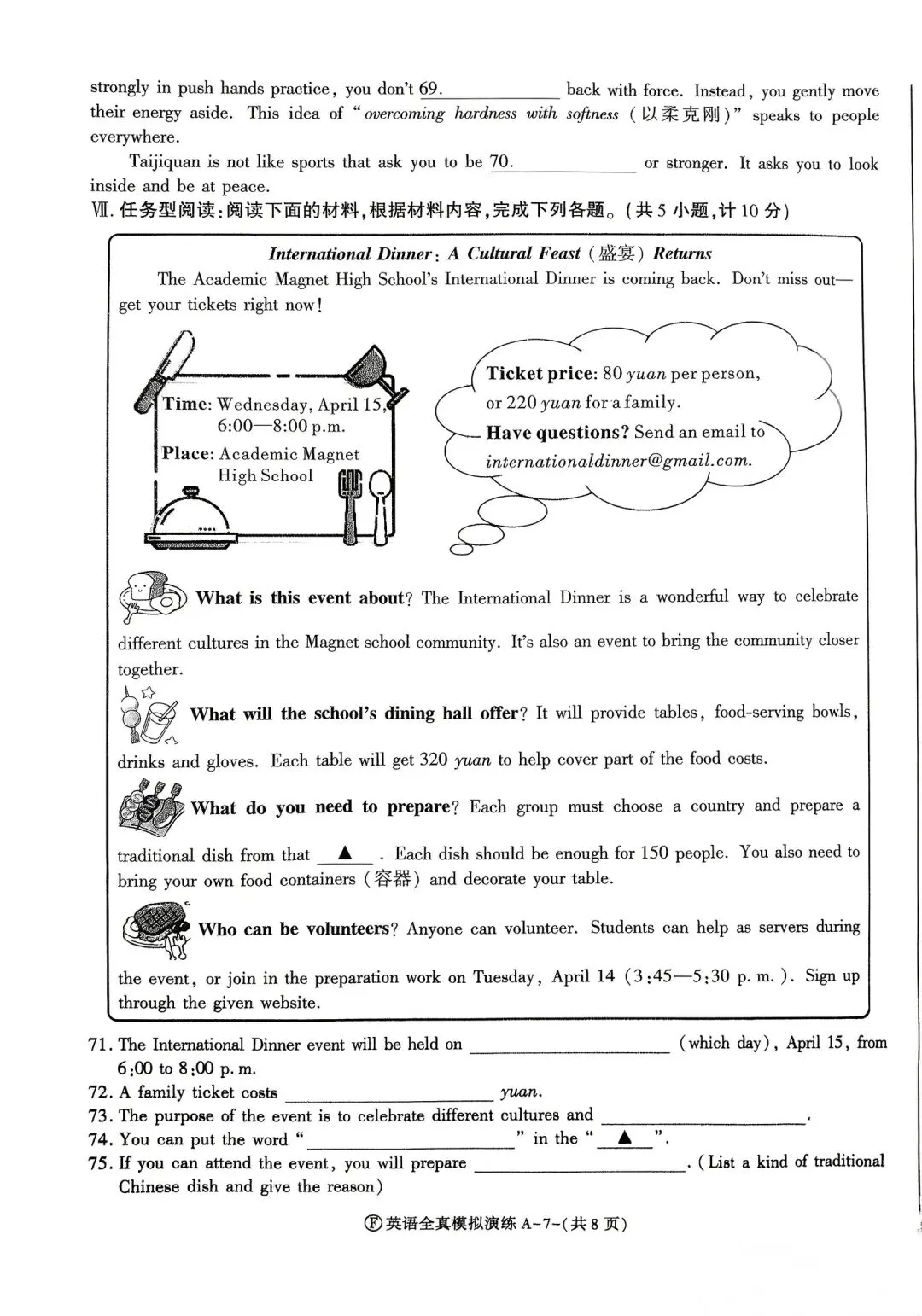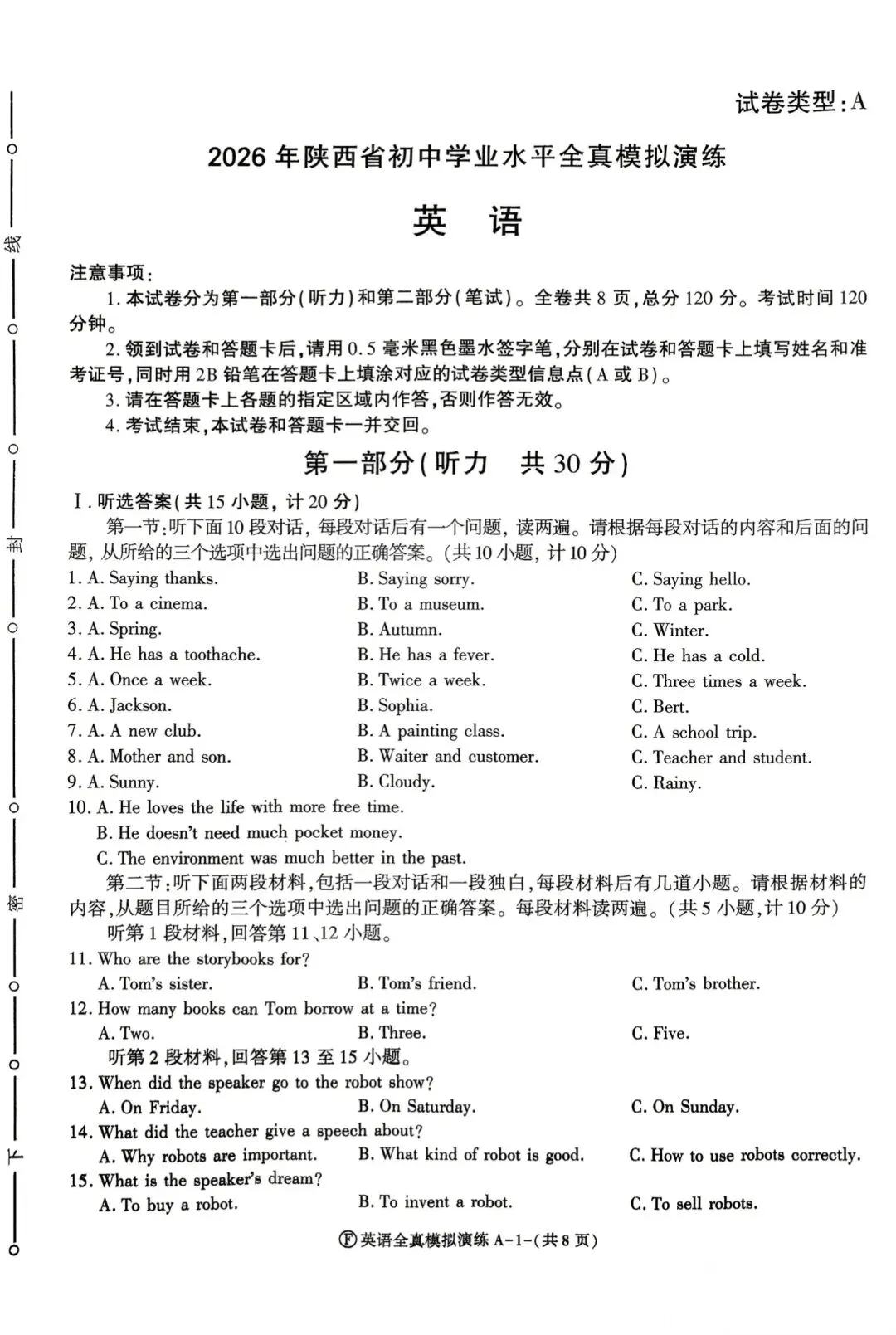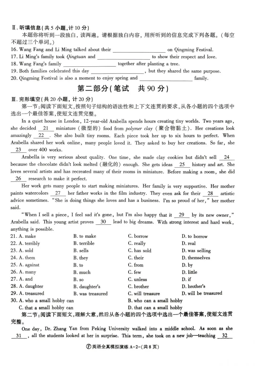 【试卷分享】2026年上海市松江区初三英语二模试卷+官方解析答案版