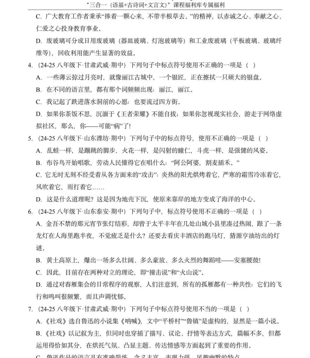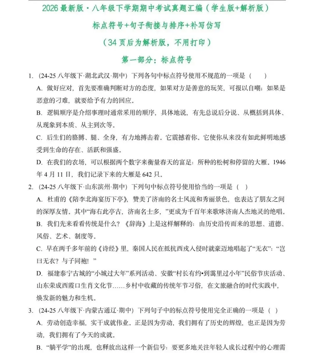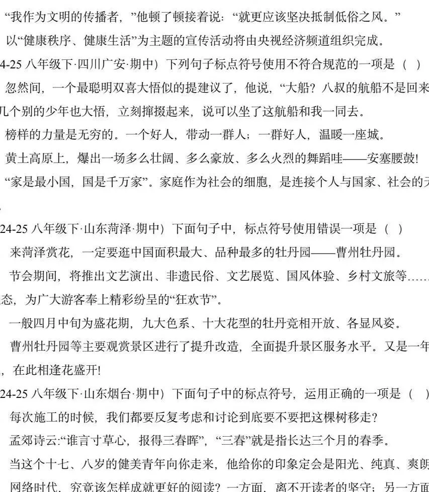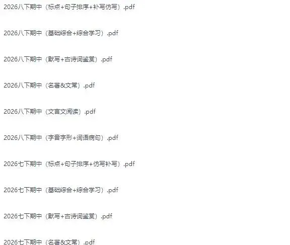 2026年最新版78年级语文下学期期中考试真题汇编