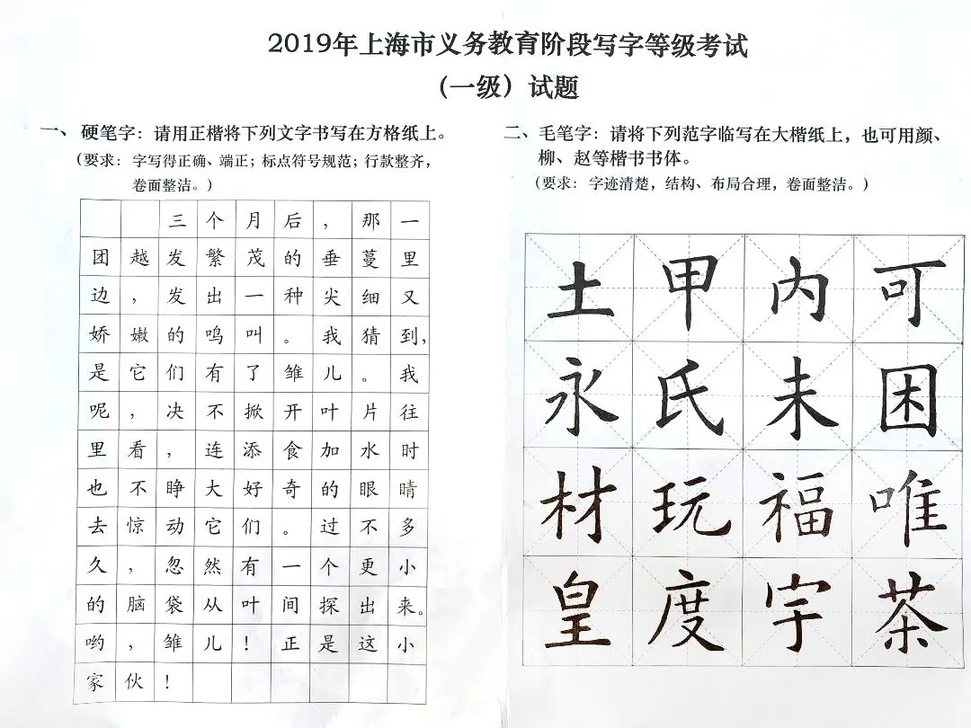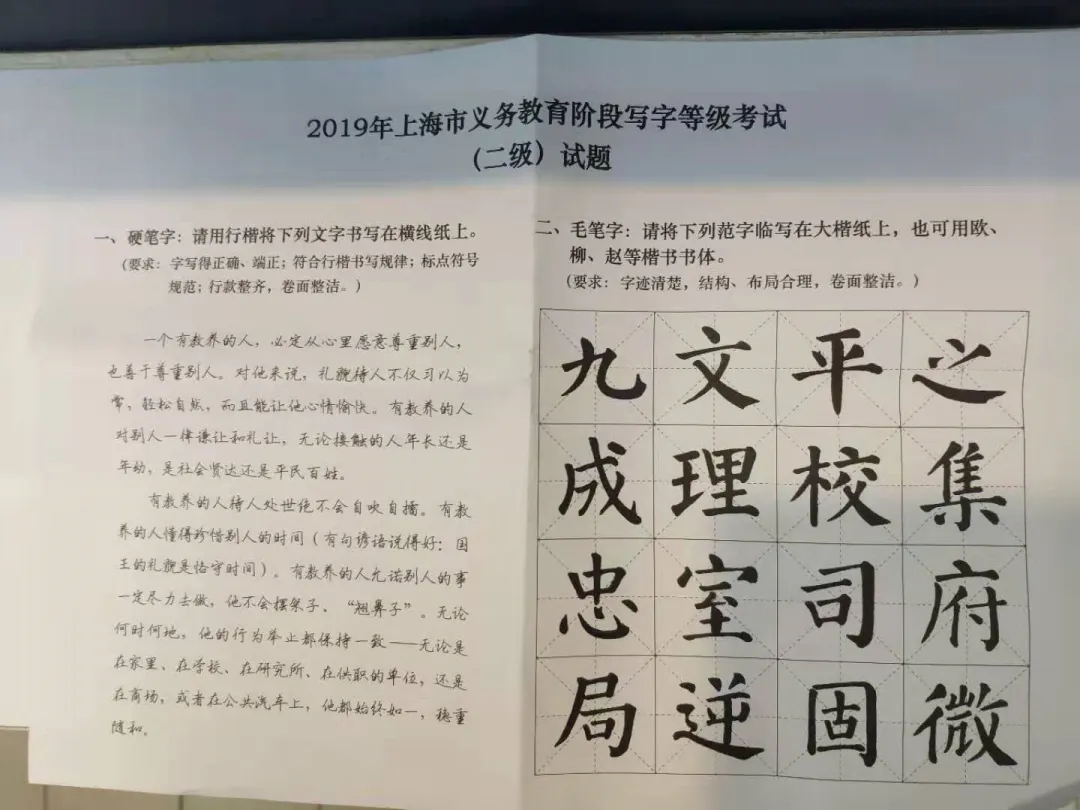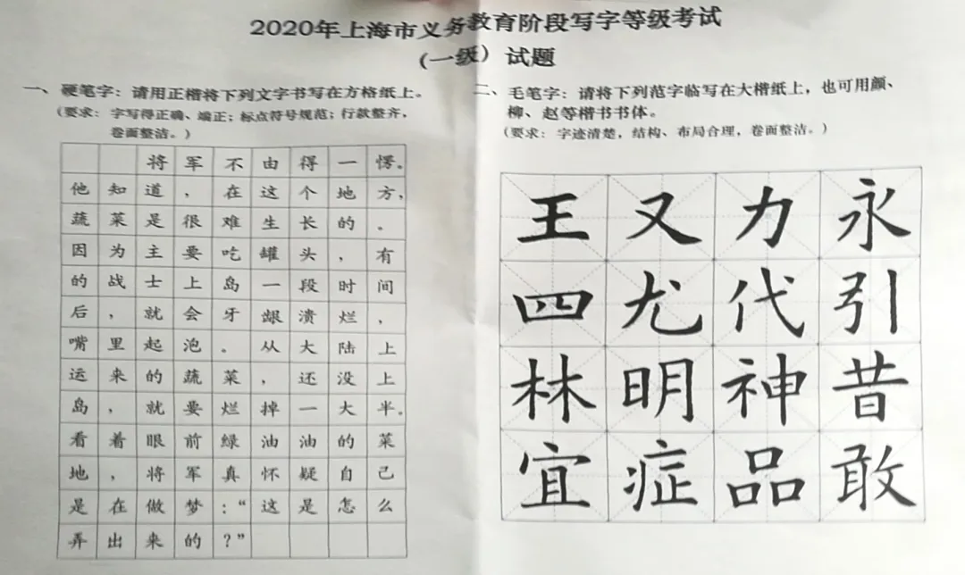 2020义务教育阶段写字等级考试