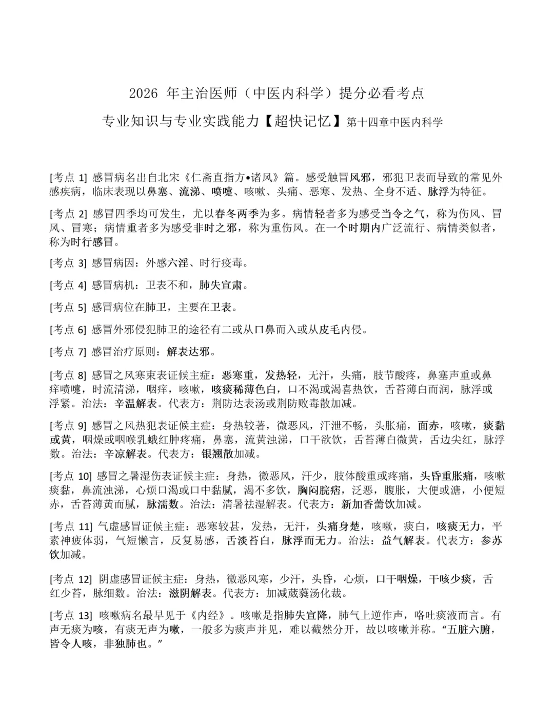 押中!2026 年主治医师考试 19 日预测真题卷入口