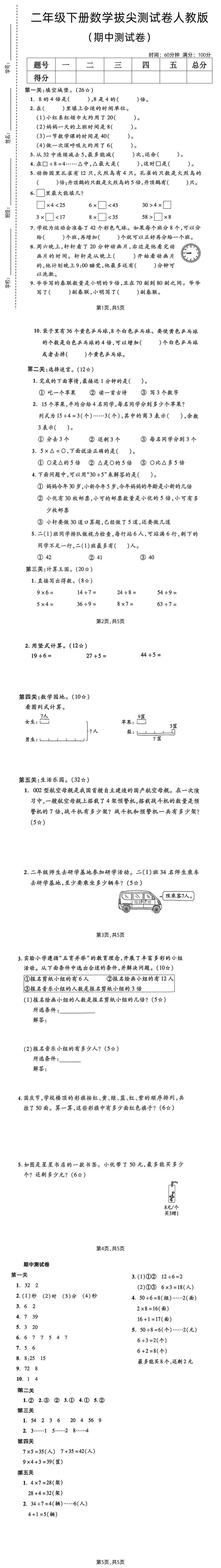 26春二年级下册人教数学《期中考试情景试卷+拔尖试卷》3套,有答案