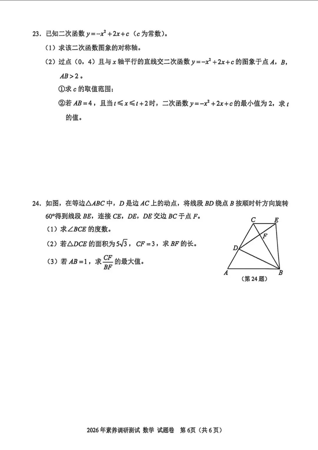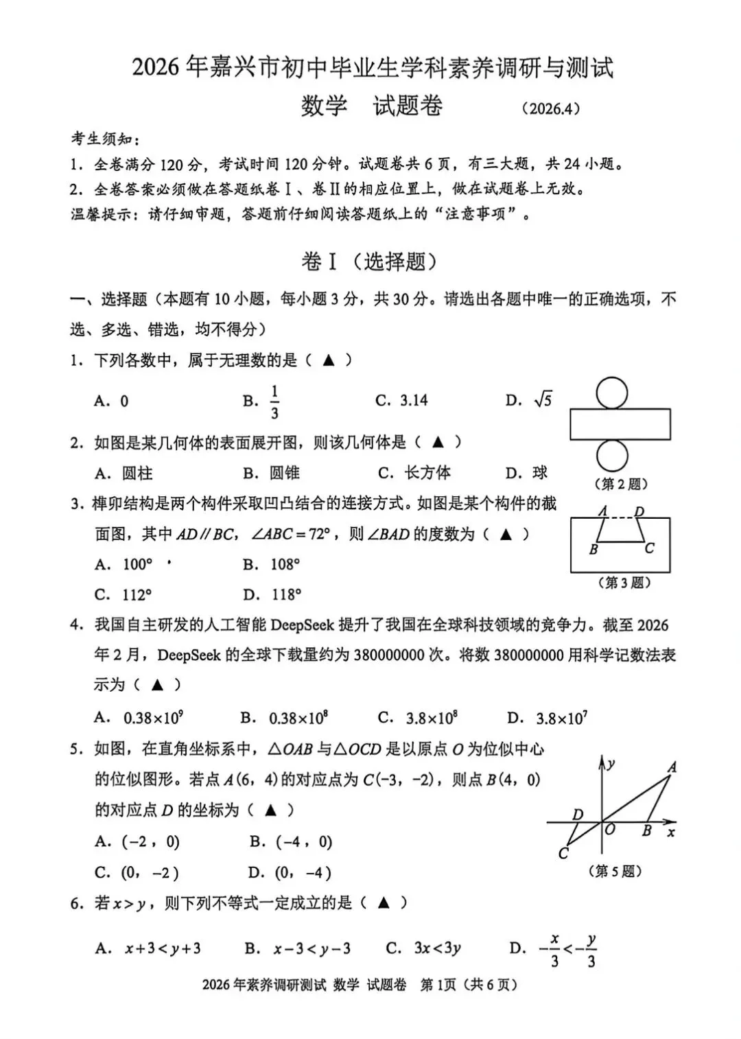 >26.4嘉兴中考一模数学试卷,难度较大!