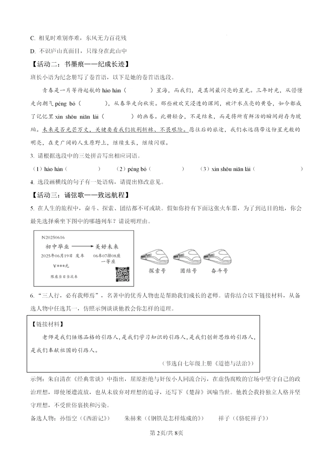 【八下生物中考试卷】2026年春期中考复习参考!2025年春期人教版生物中真题+答案,速存!