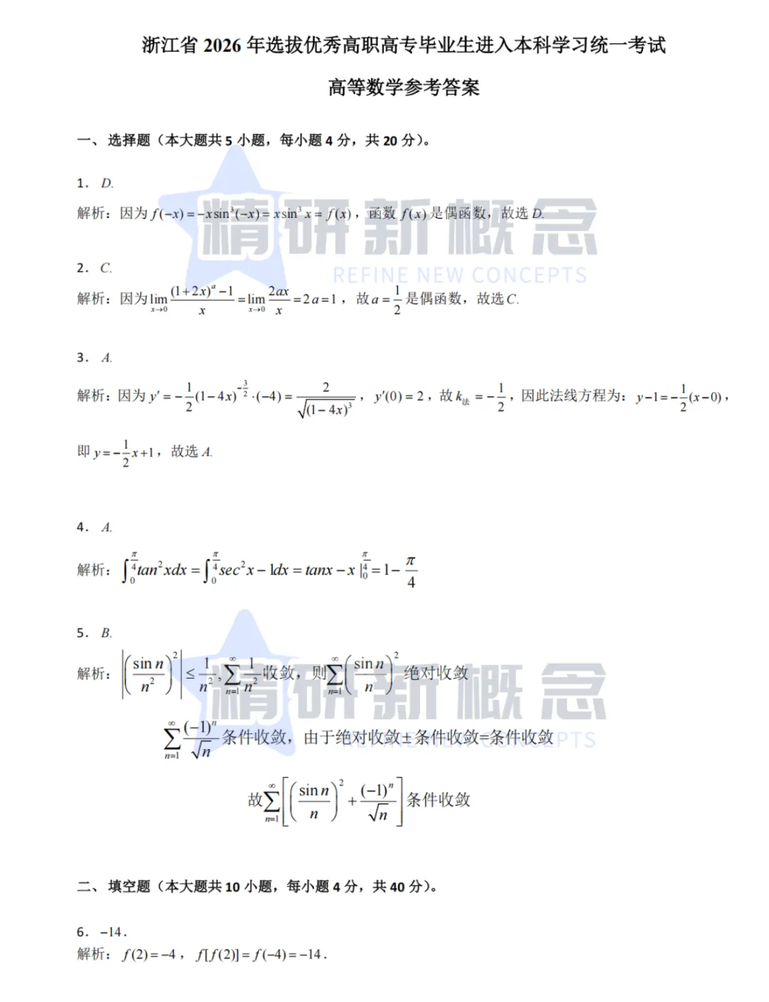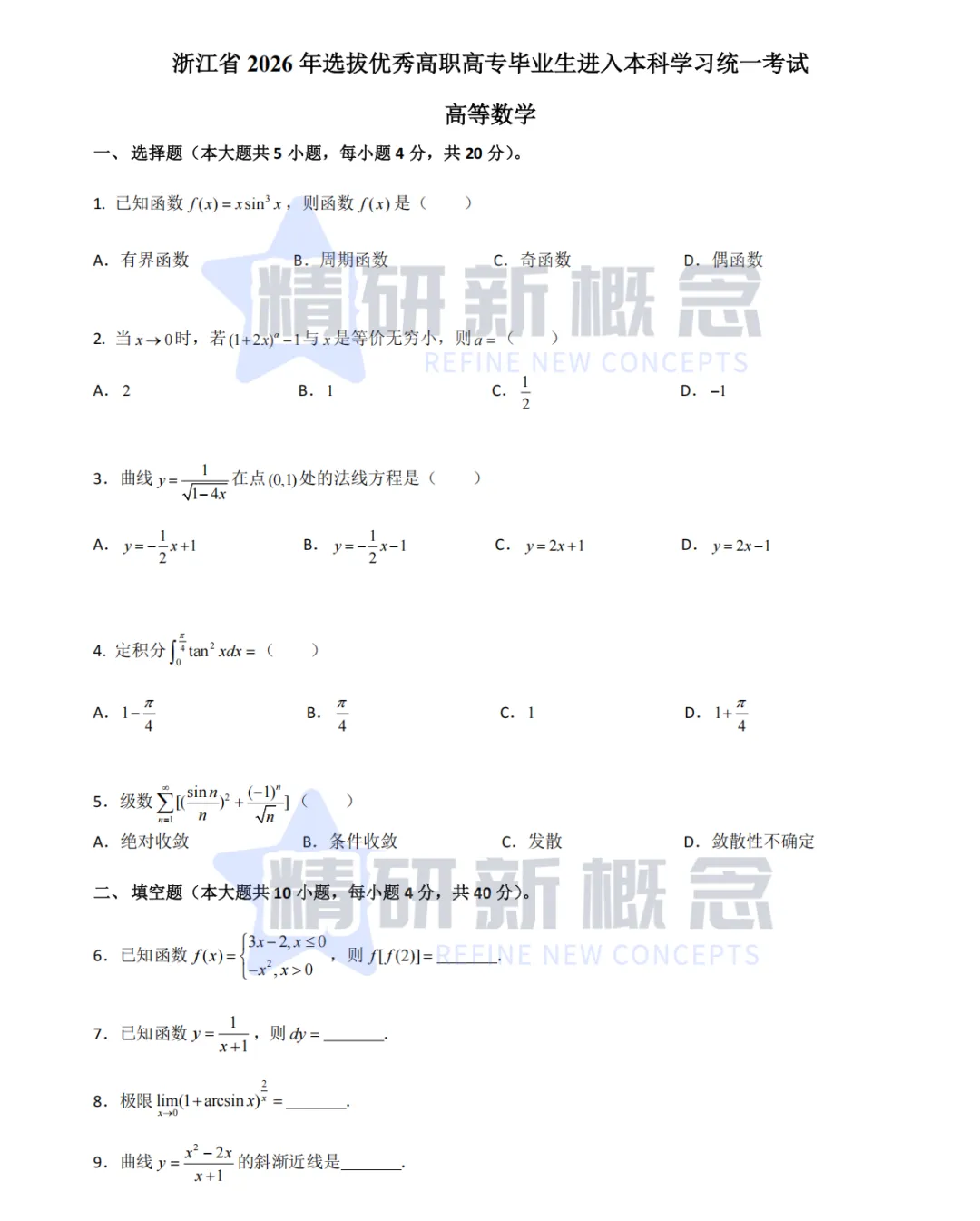 【精研新概念】2026浙江专升本高等数学真题和答案出了!