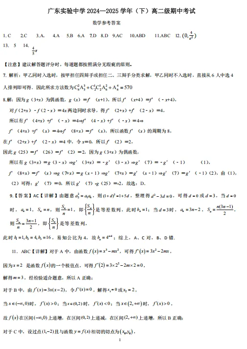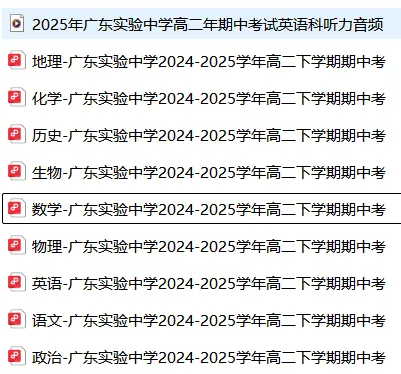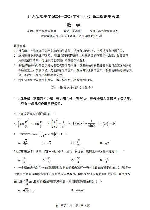 【高二】期中丨往期试卷-广东实验中学2024-2025学年高二下学期期中考