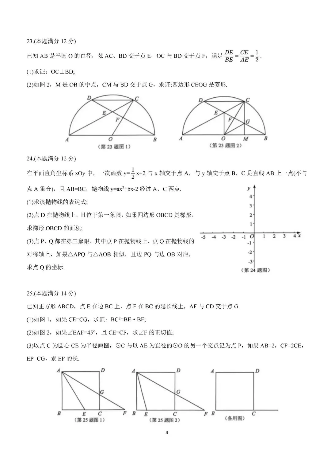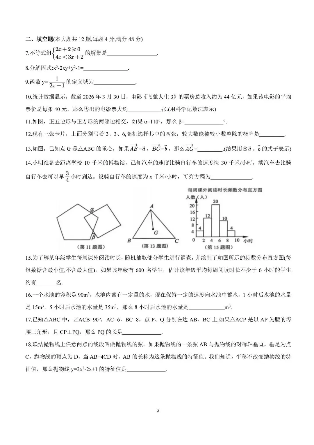 >2026届上海市松江区初三二模数学试卷(含答案)