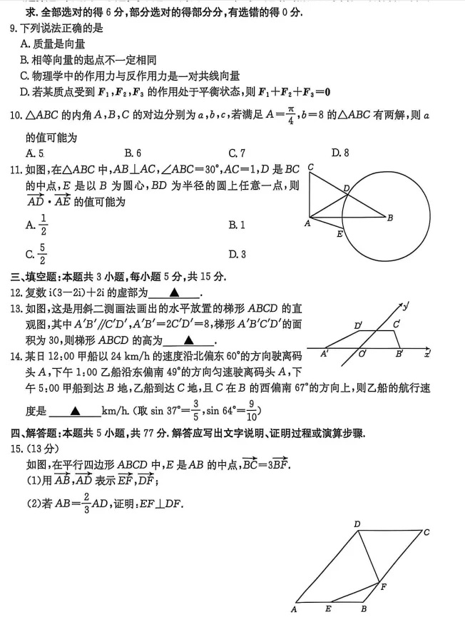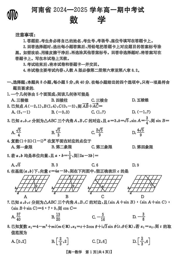 郑州二中2024-2025高一期中联考数学试卷(已优化).pdf