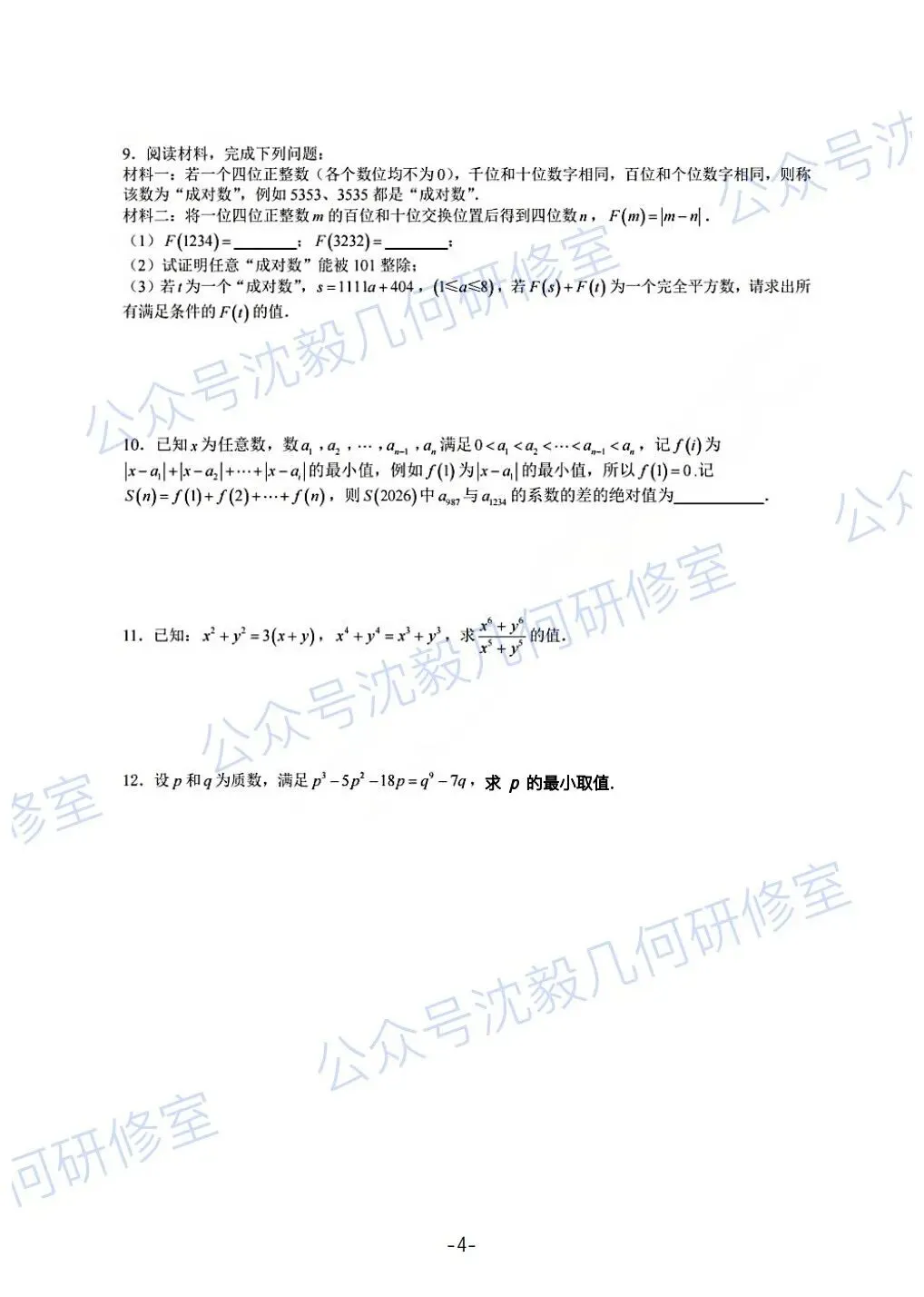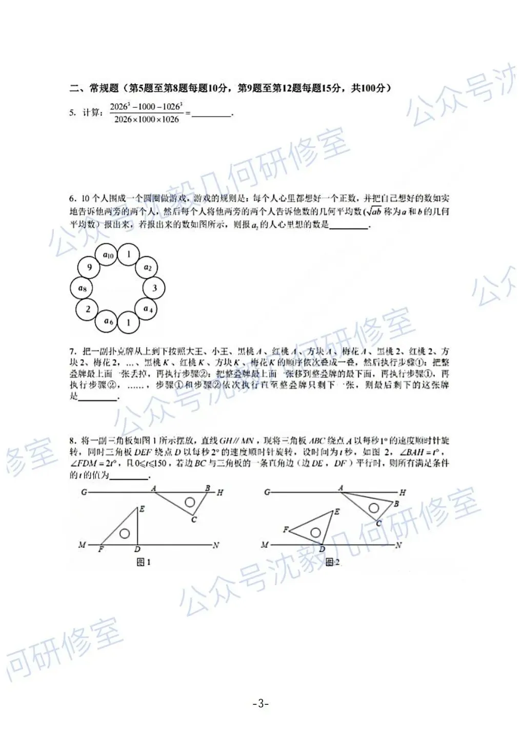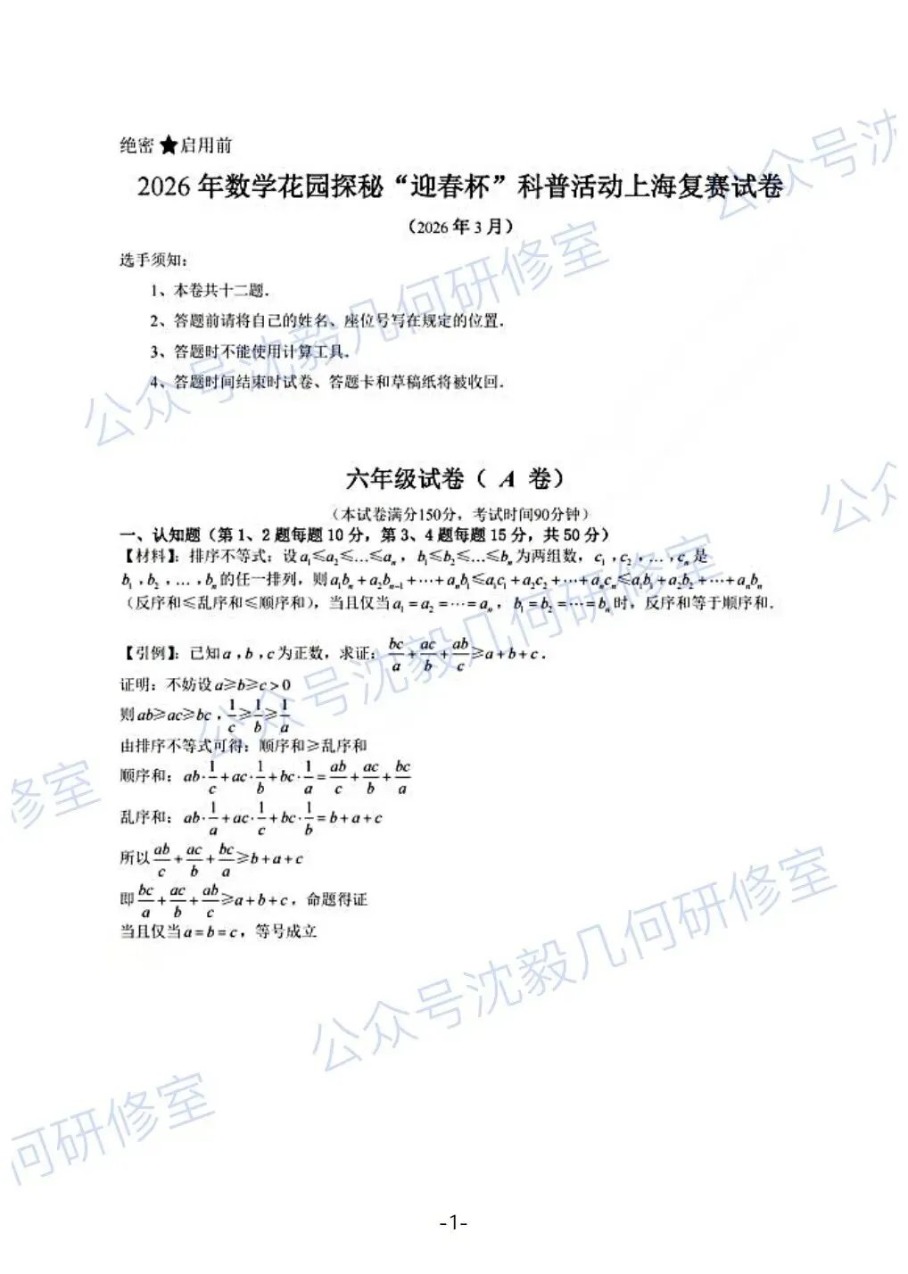 2026世界少年奥林匹克思维能力全国总测评七八九年级一试试题