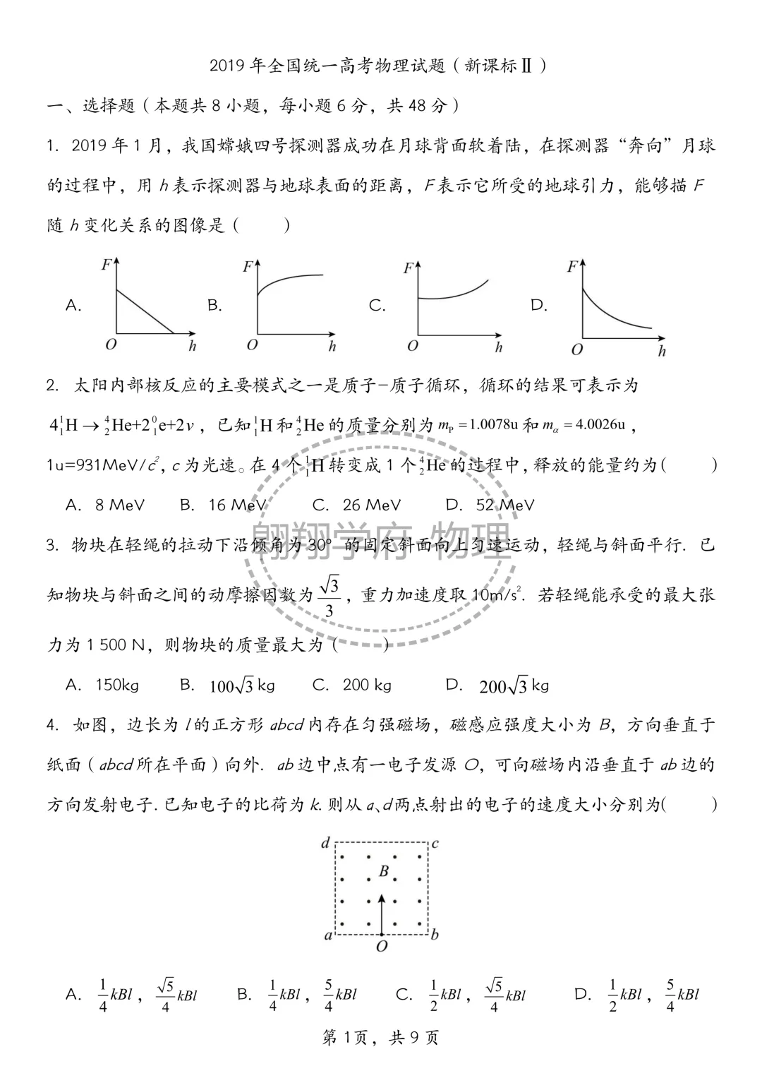>2019年全国II卷物理部分试卷