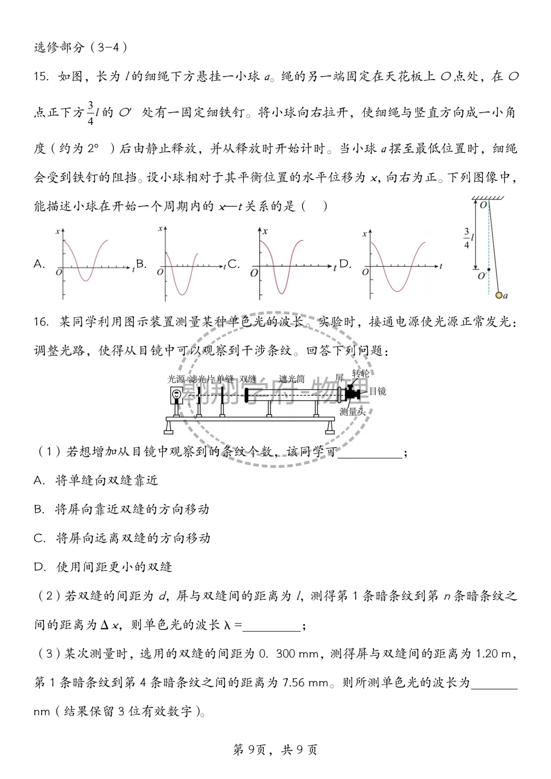 2026届江苏南通如皋2.5模物理试卷+答案(2026.4.17)