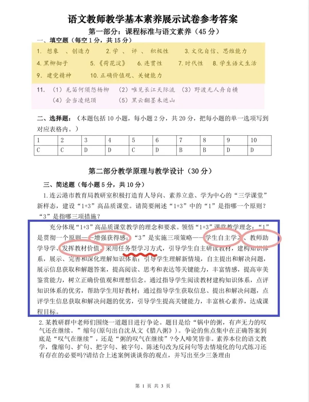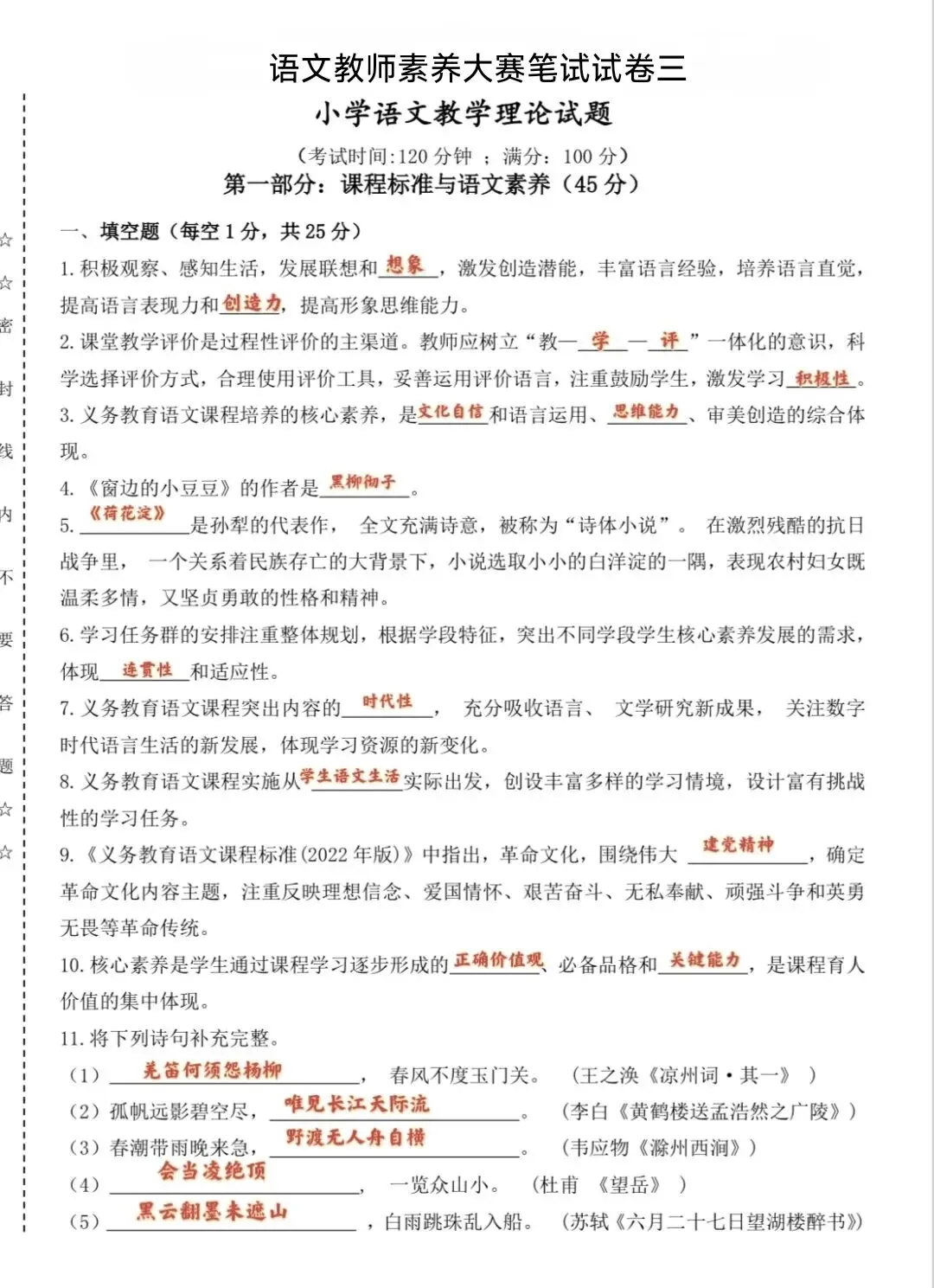 为备战新学期语文教师素养大赛笔试,我搜集整理了几套典型试卷陆续分享于此,既是自我梳理,也与各位同仁一同学习、共同进步。📗电子打印版,可关注本公众号,回复关键词“笔试”,即可获取。