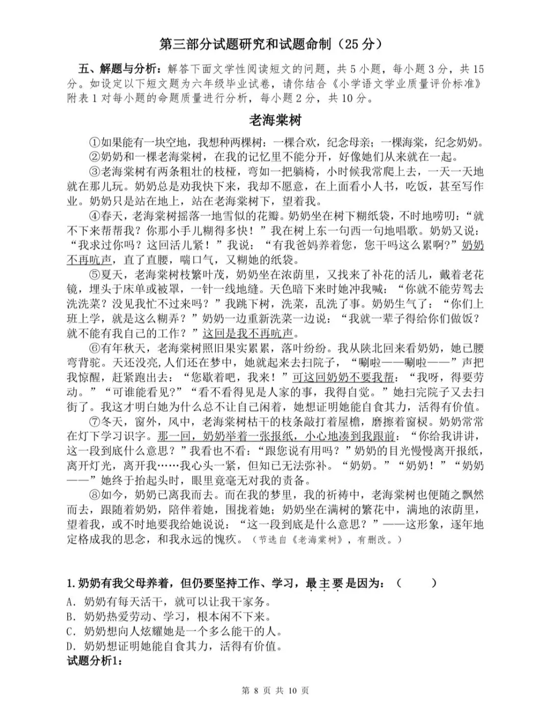 最响起小小说:一套试卷