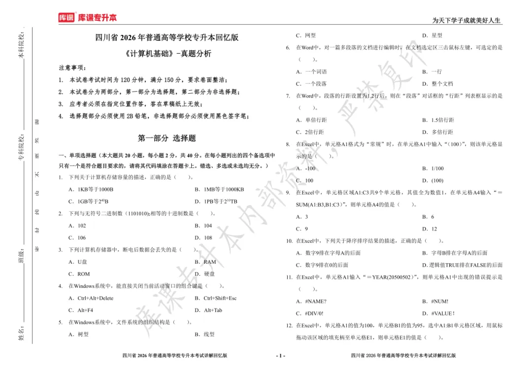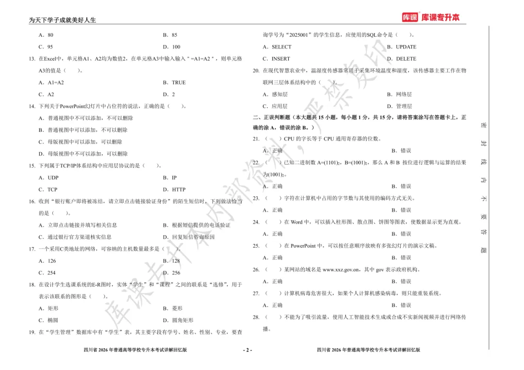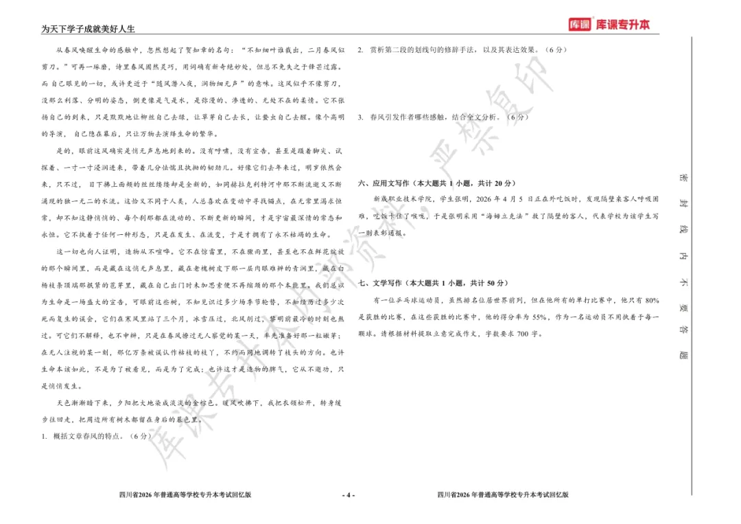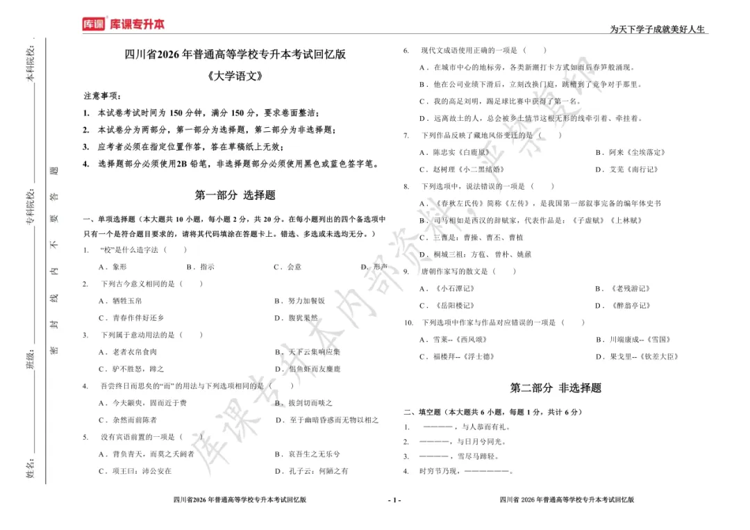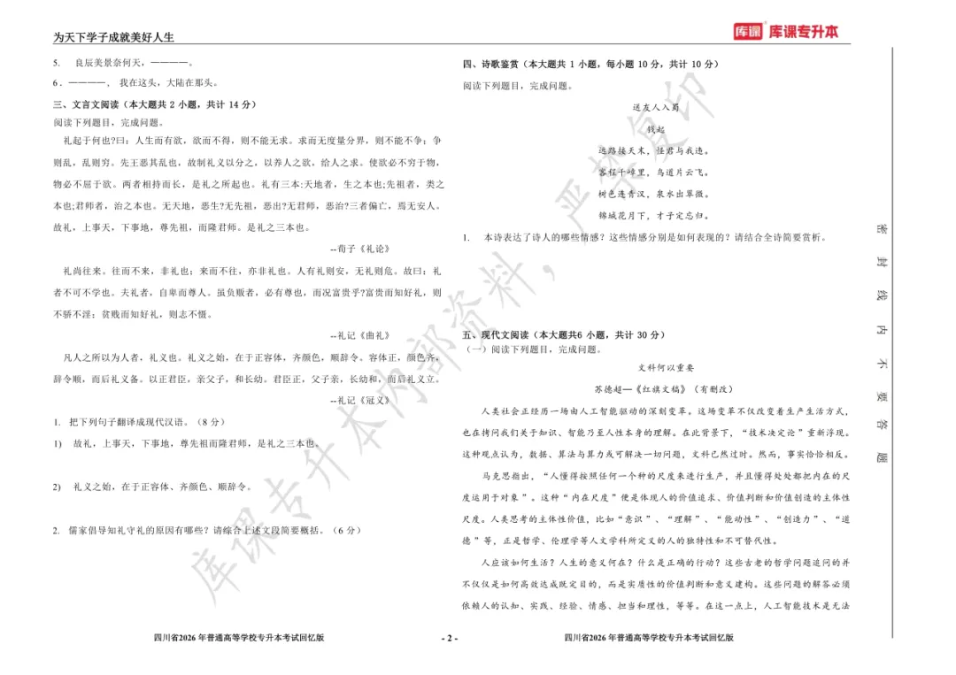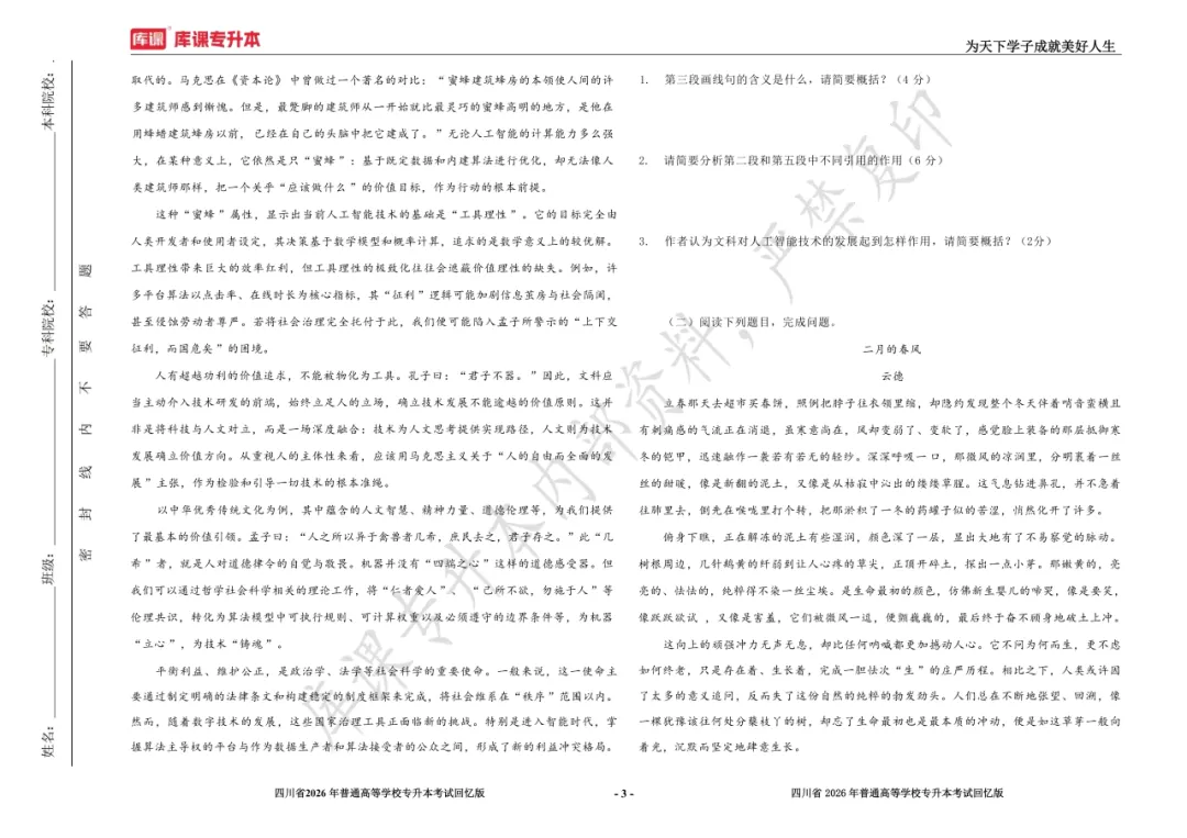 考试答案已出!速速围观【完整版】2026年四川统招专升本 | 四科还原