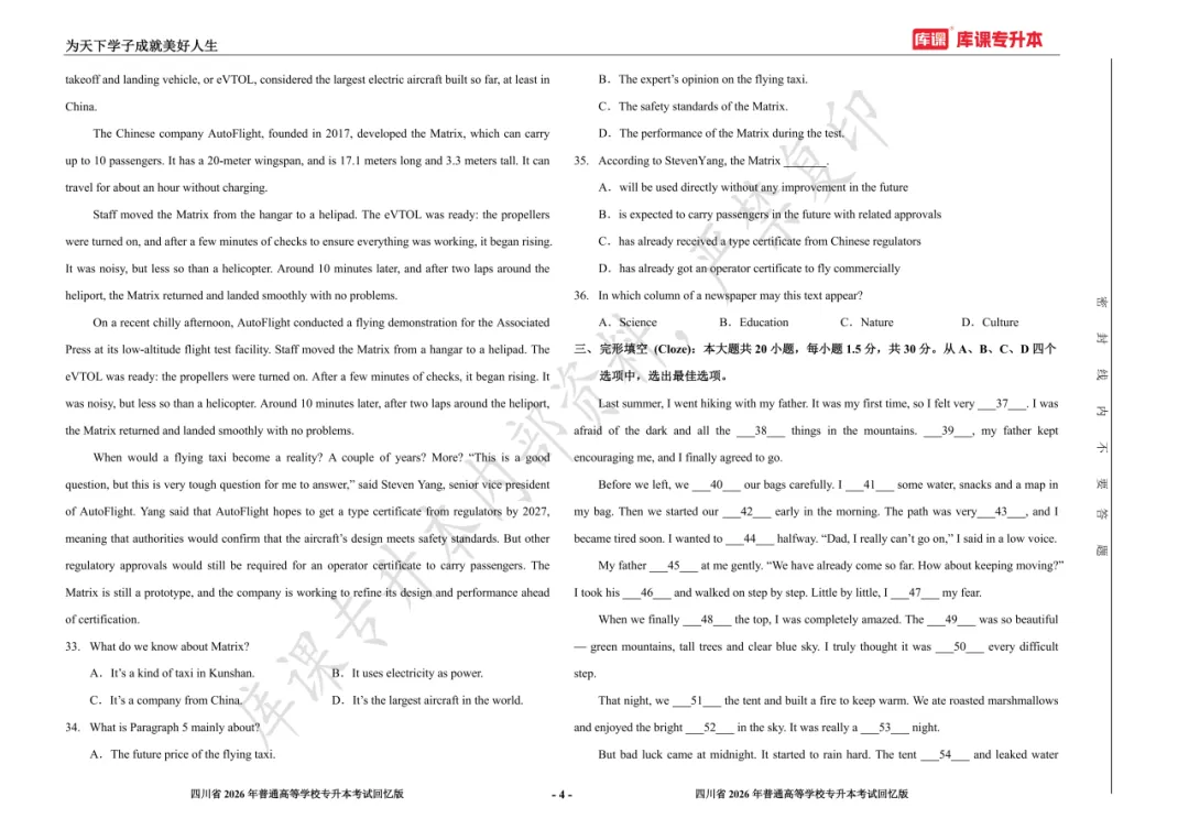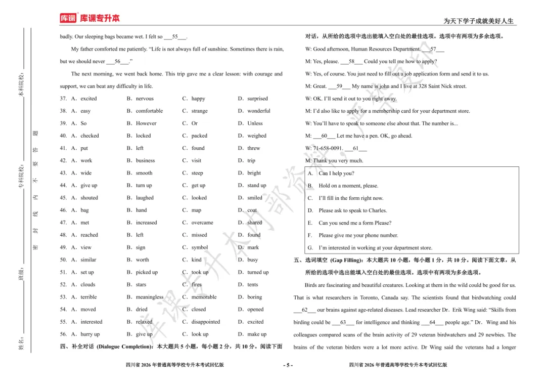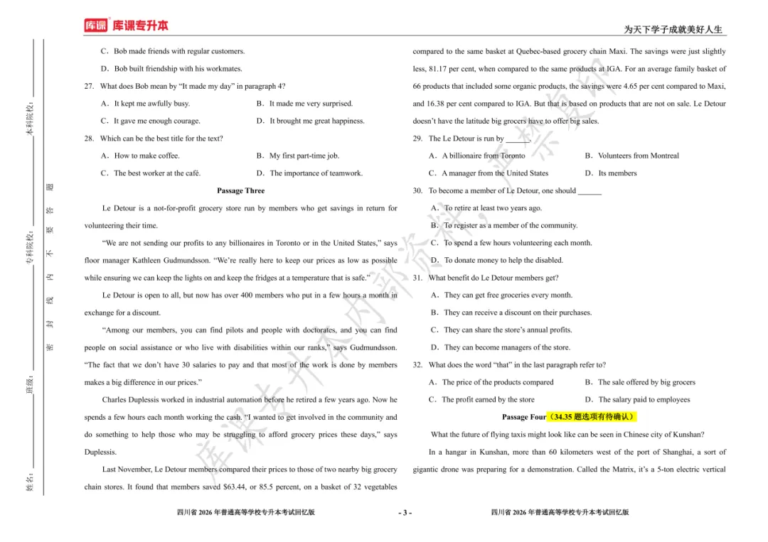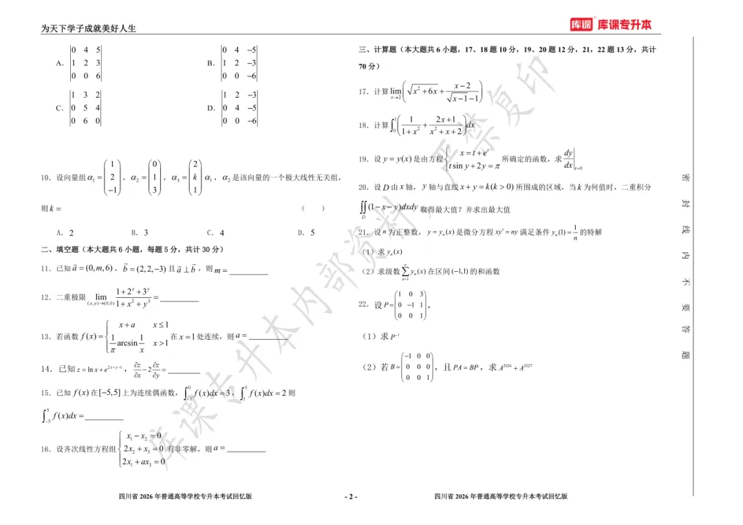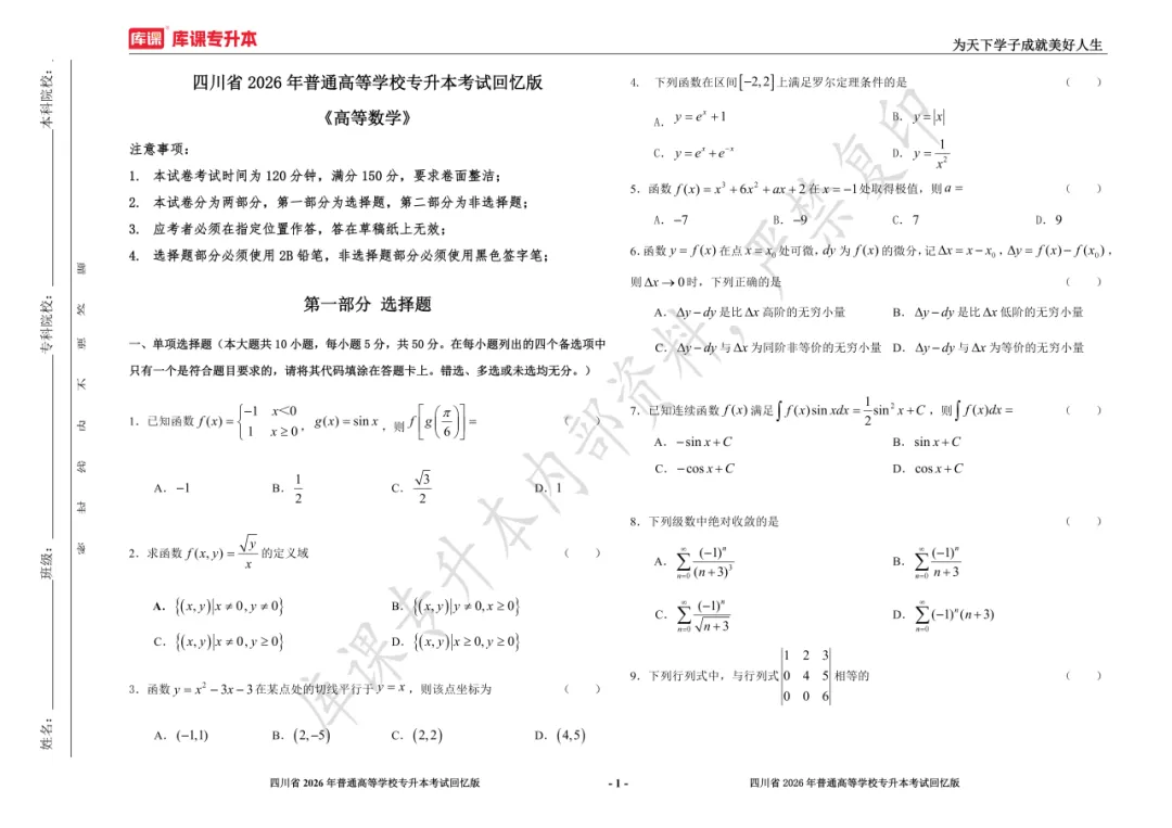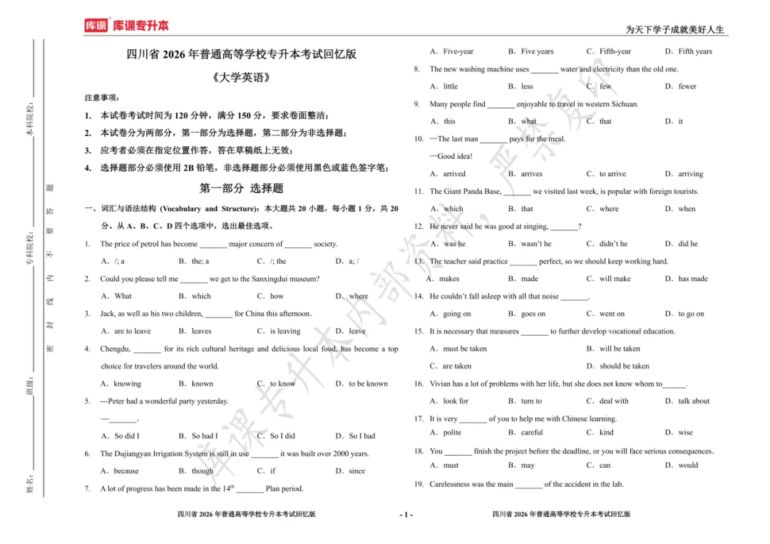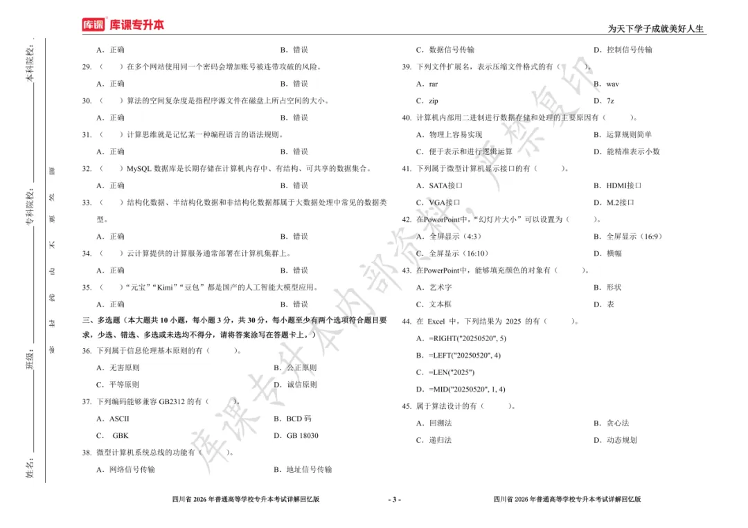 考试答案已出!速速围观【完整版】2026年四川统招专升本 | 四科还原