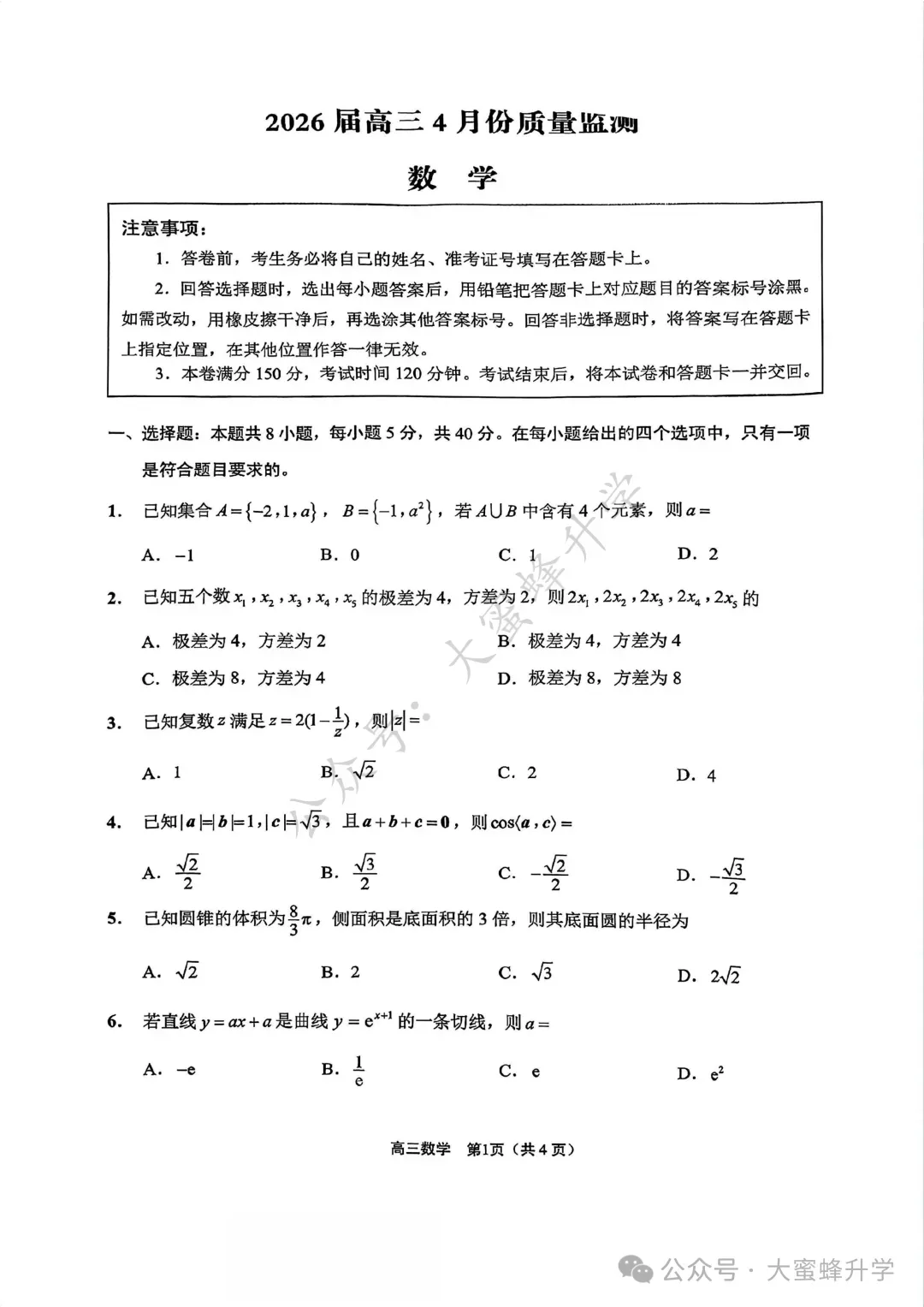 【免费分享】2026年3月中考数学冲刺试卷(试卷及解析)-电子版PDF可打印