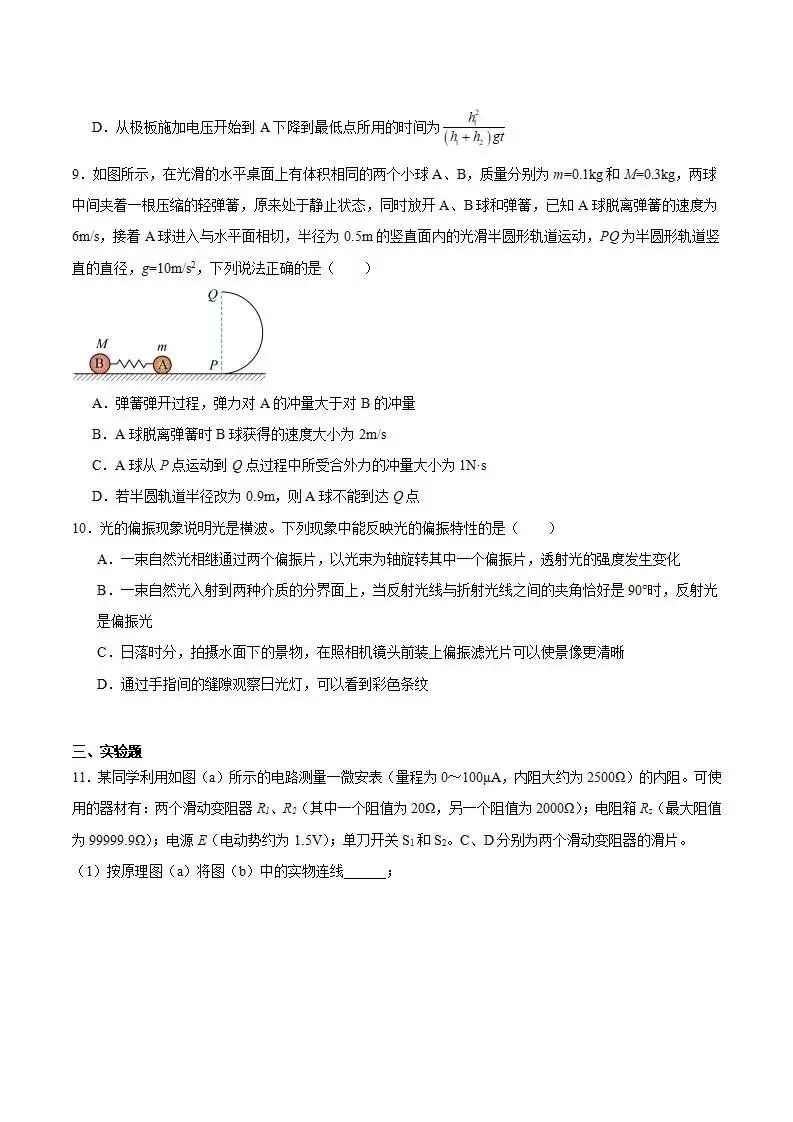 当前位置:首页>考研真题>《高中试卷》湖北省随州市部分高中2025-2026学年高二上学期期末联考物理(含答案)