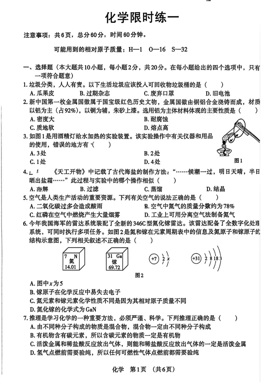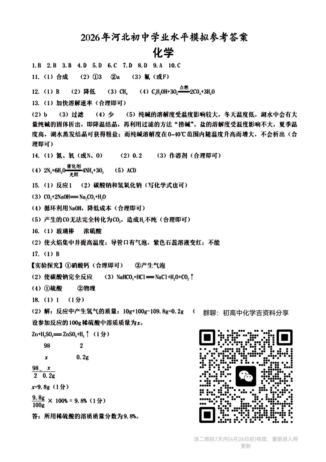 石家庄41中(4月17日)周测 化学试卷(有答案)