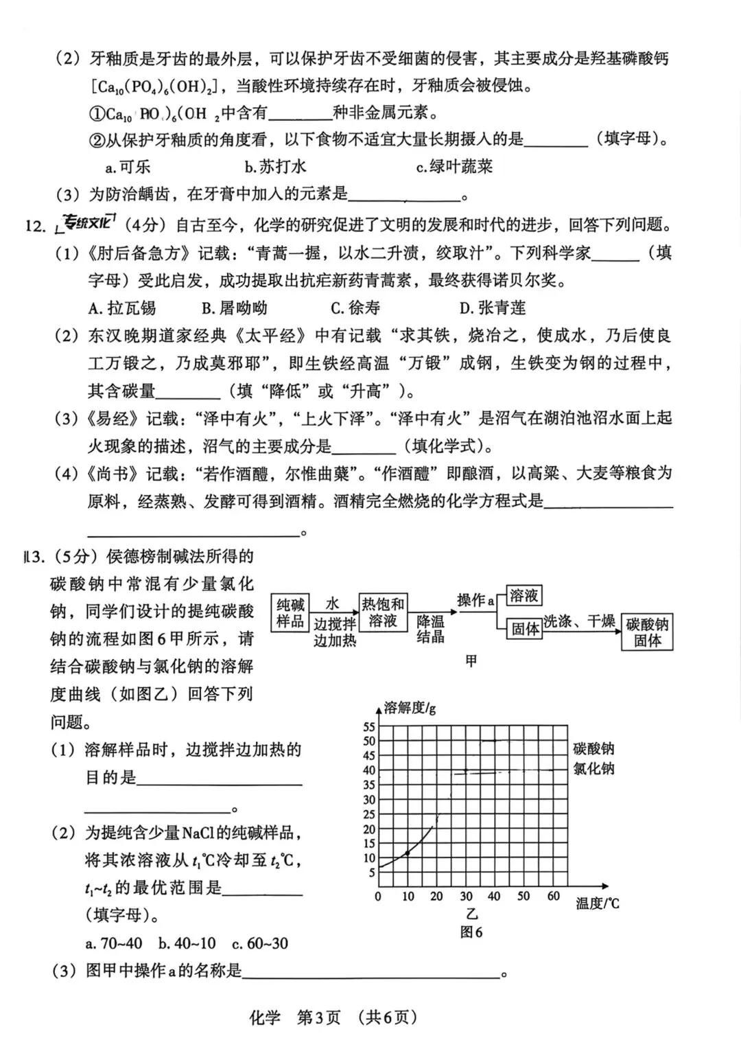 一到六年级下册语文期中考试试卷(含答案)pdf电子版,可打印