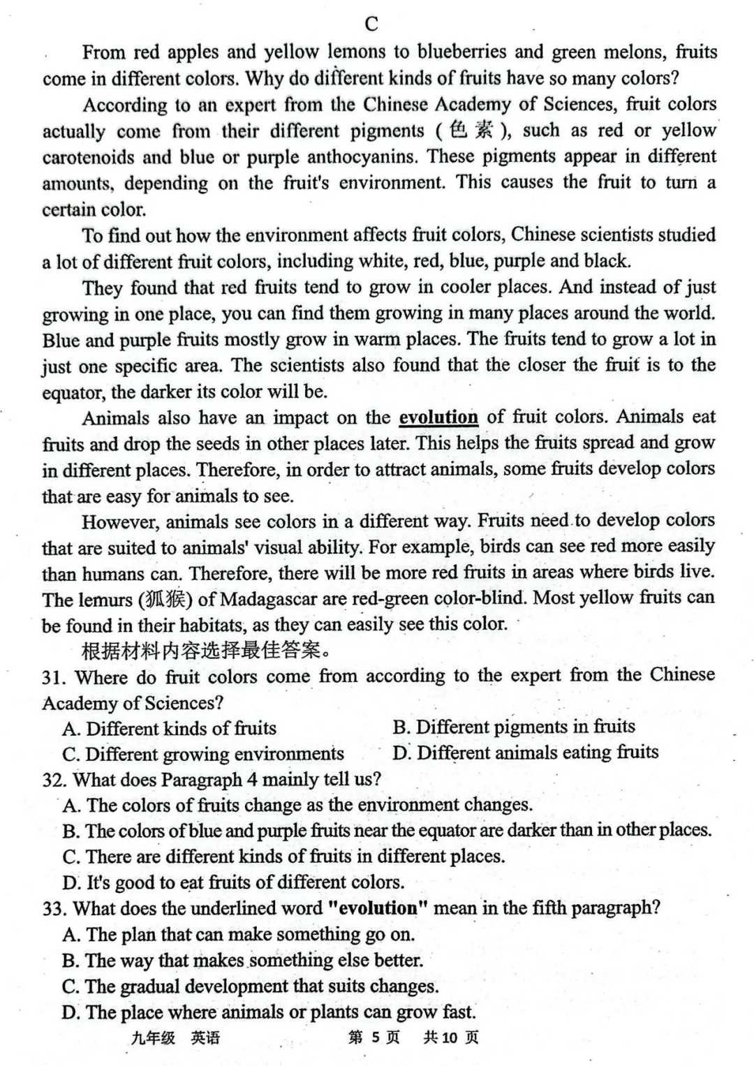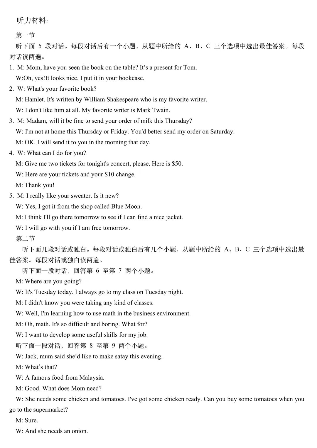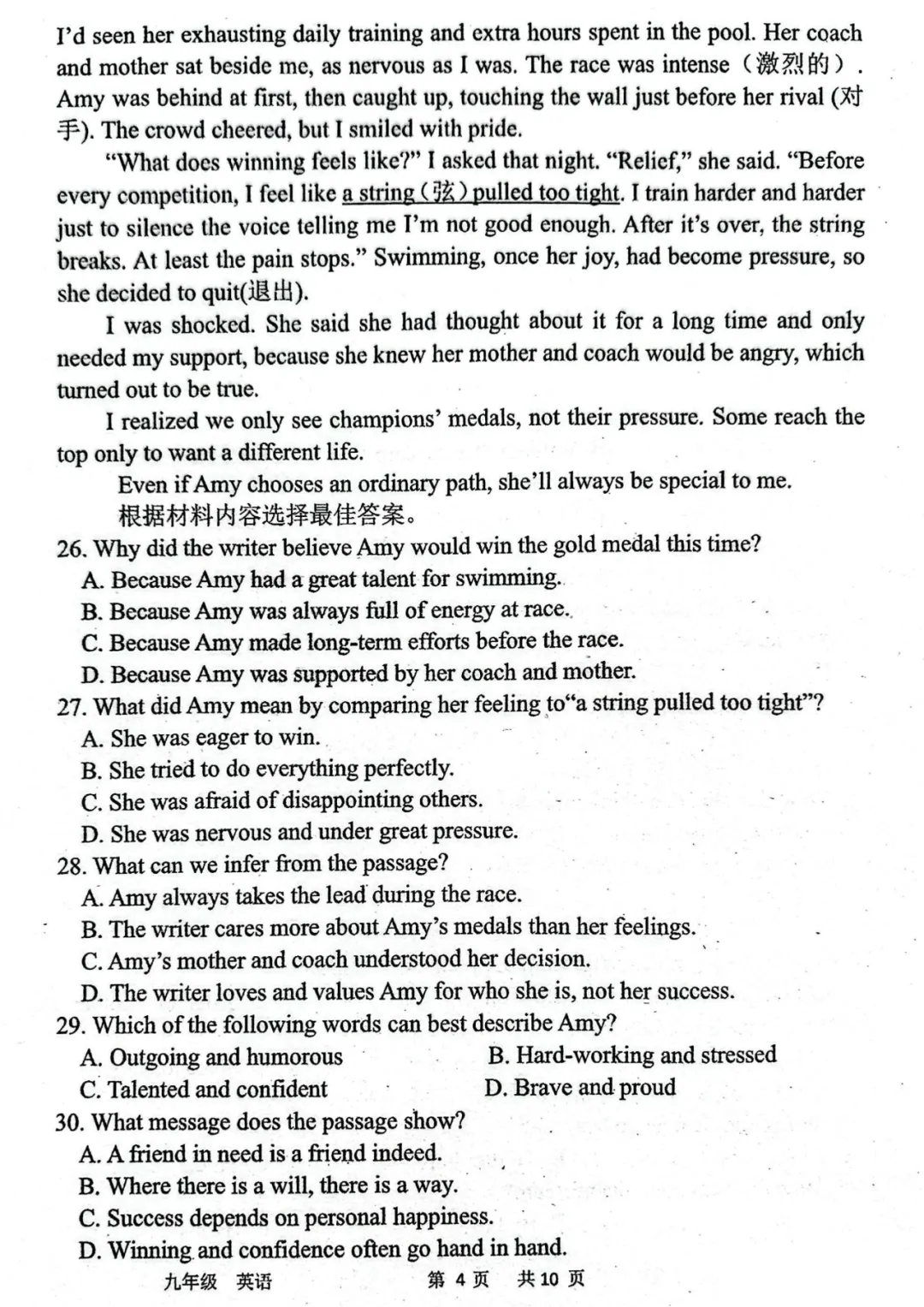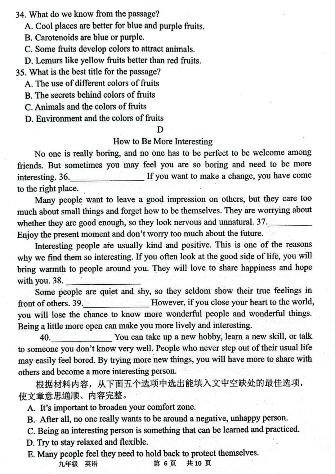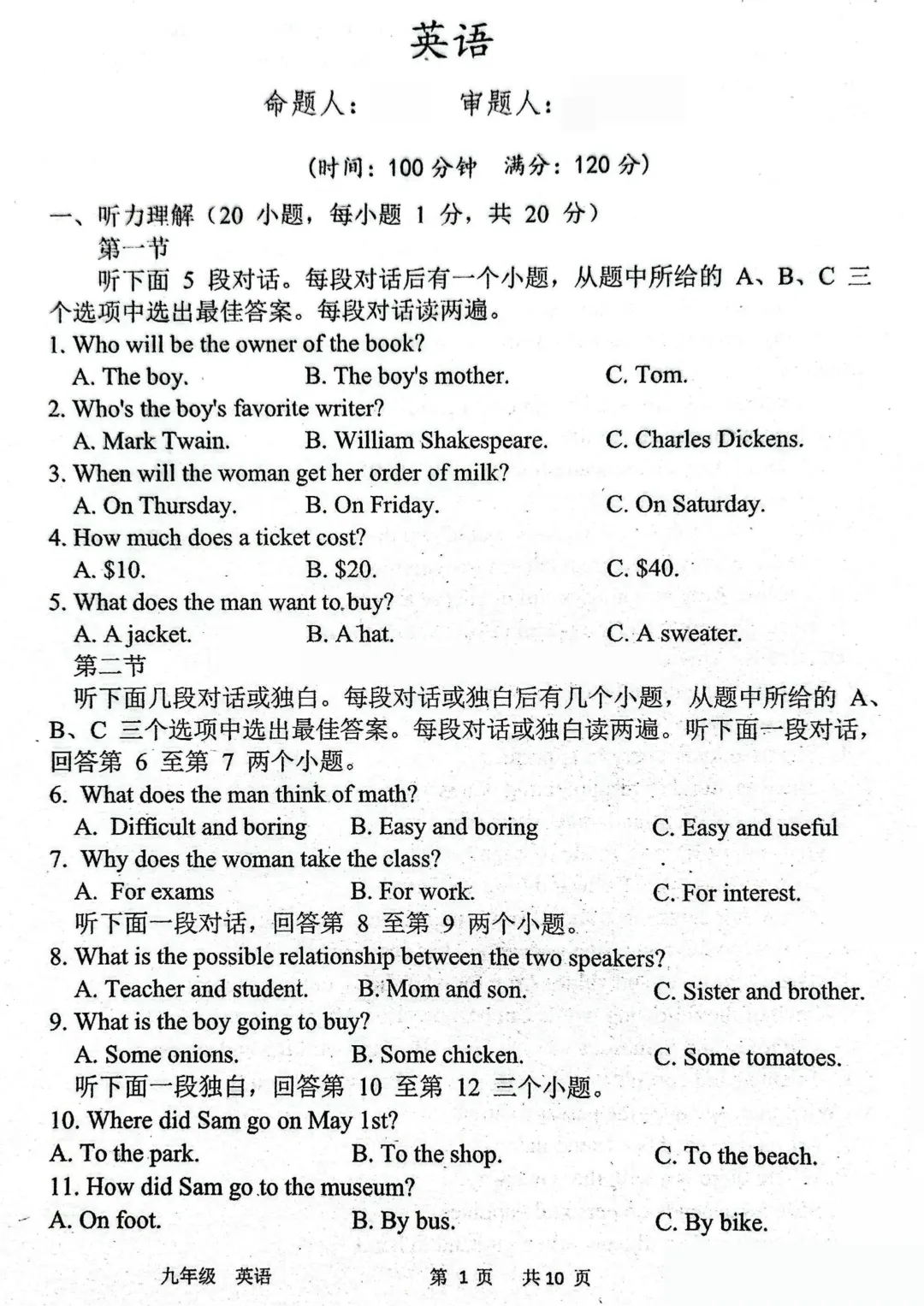 >2026年河南中招英语考试模拟试卷