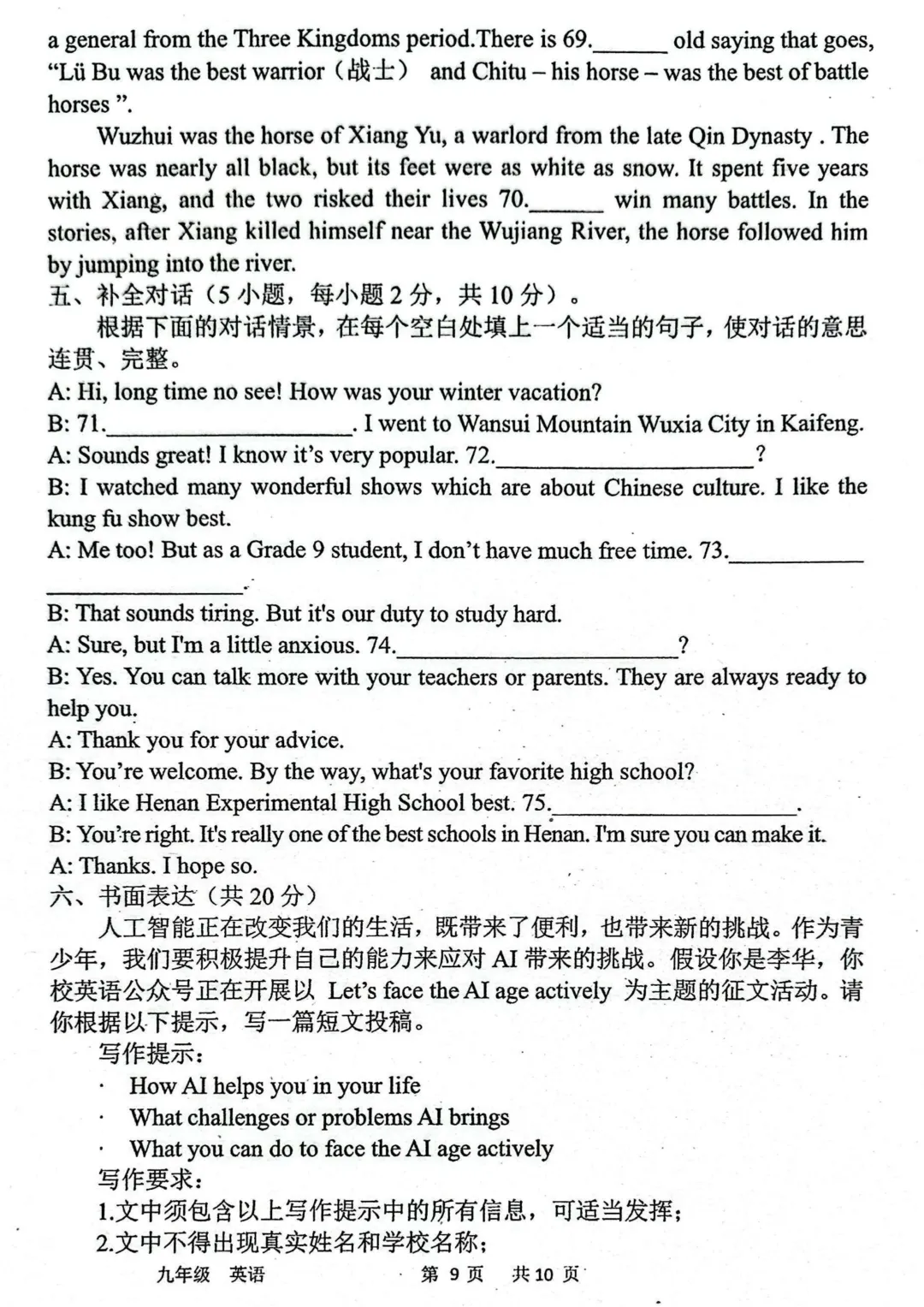 2026年河南中招英语考试模拟试卷